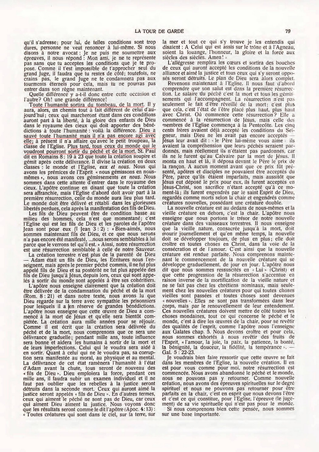 Toute l'humanité sortira du tombeau, de la mort... Dieu a sauvé toute l'humanité mais il n'a pas encore agi avec elle... Plus tard, tous ceux du monde qui le voudront pourront sortir du péché et de la mort.