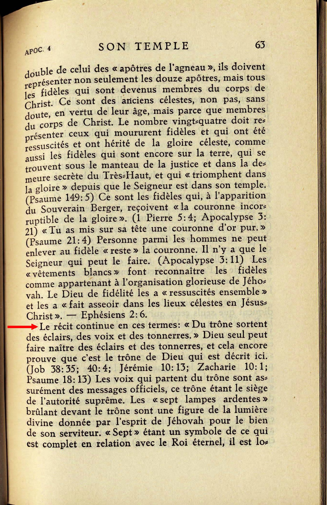 [...] du trône sortent des éclairs et des voix et des tonnerres [...] Révélation 4:2-6 [...] Les éclairs, les voix et les tonnerres soulignent la puissance divine.