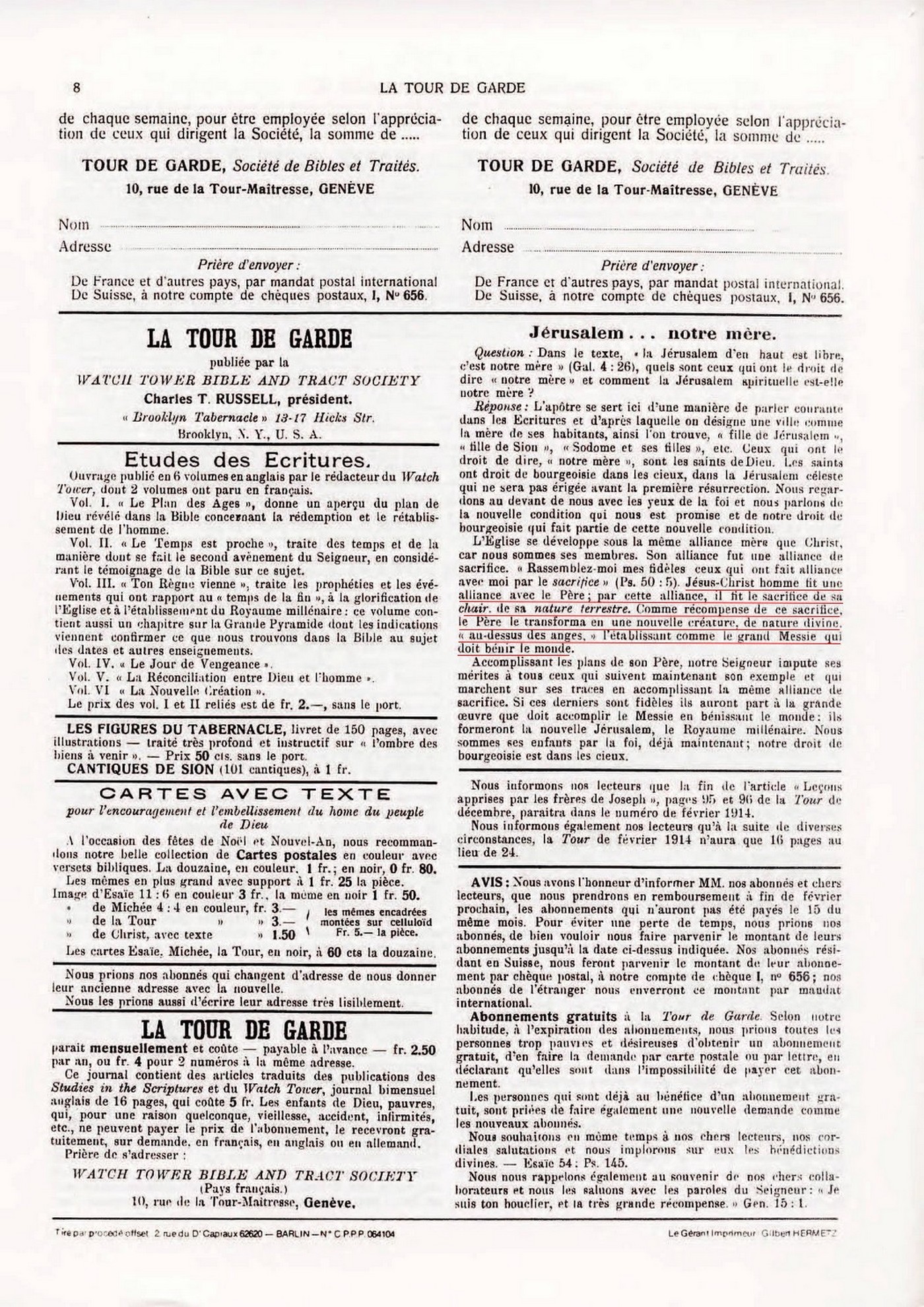 Source : 🇫🇷 La Tour de Garde, Janvier 1914, page 8 |
