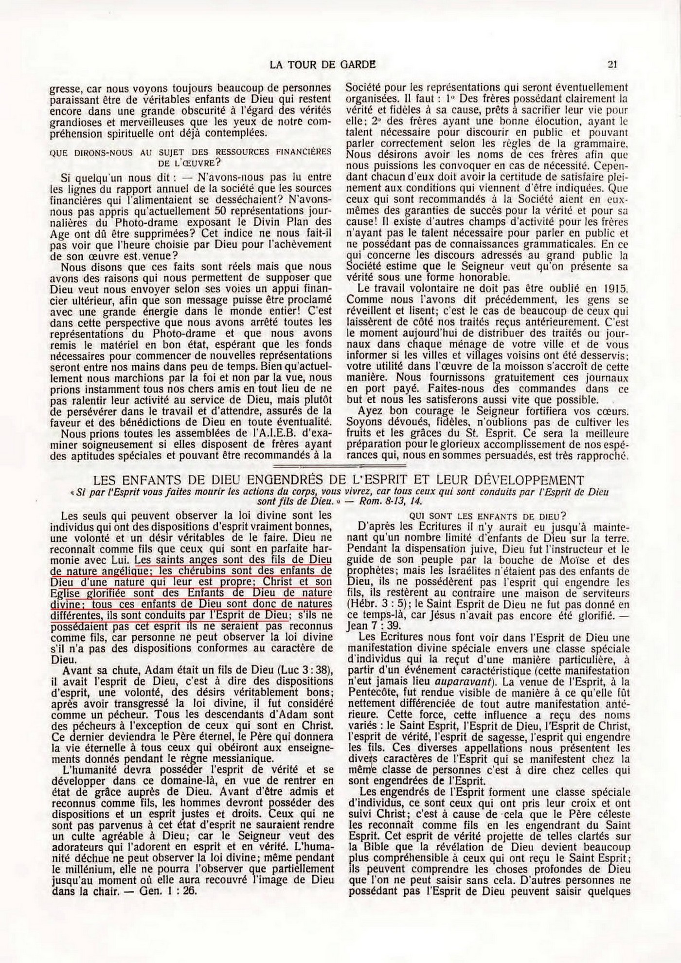 Les saints anges sont des fils de Dieu de nature angélique; les chérubins sont des enfants de Dieu d'une nature qui leur est propre; Christ et son Eglise glorifiée sont des Enfants de Dieu de nature divine: tous ces enfants de Dieu sont donc de natures différentes, ils sont conduits par l'Esprit de Dieu.