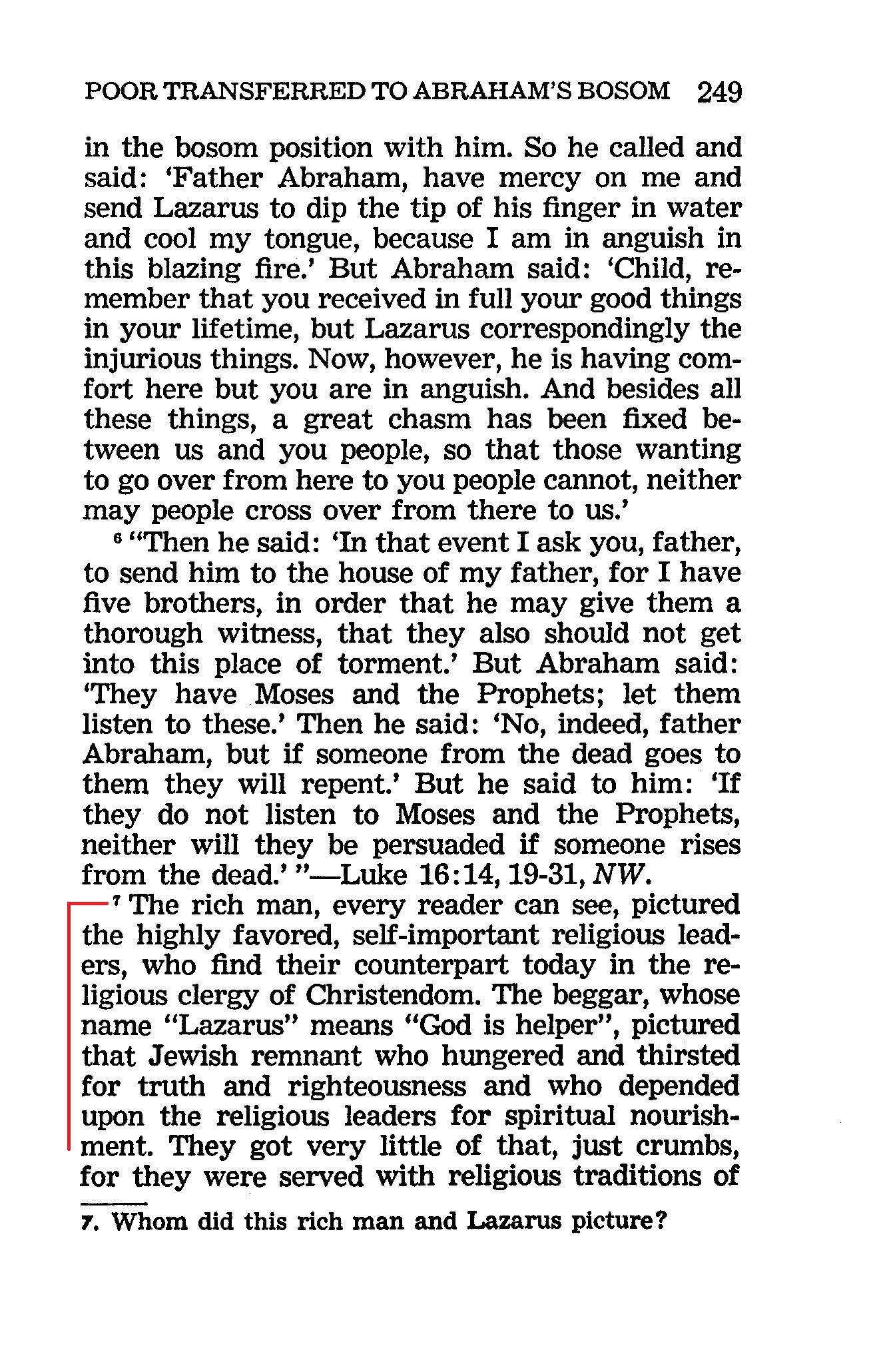 The rich man, every reader can see, pictured the highly favored, self-important religious leaders, who find their counterpart today in the religious clergy of Christendom . The beggar, whose