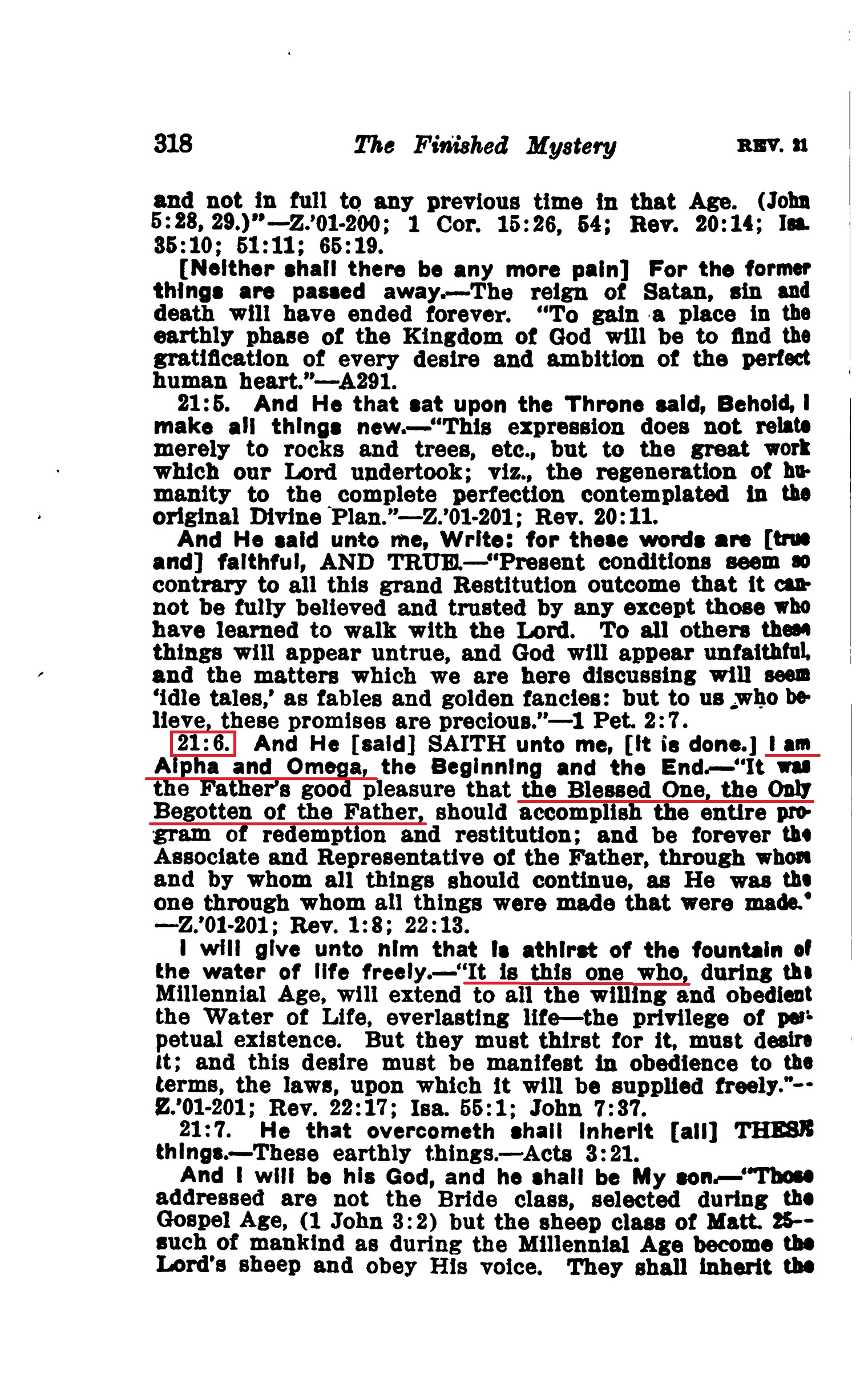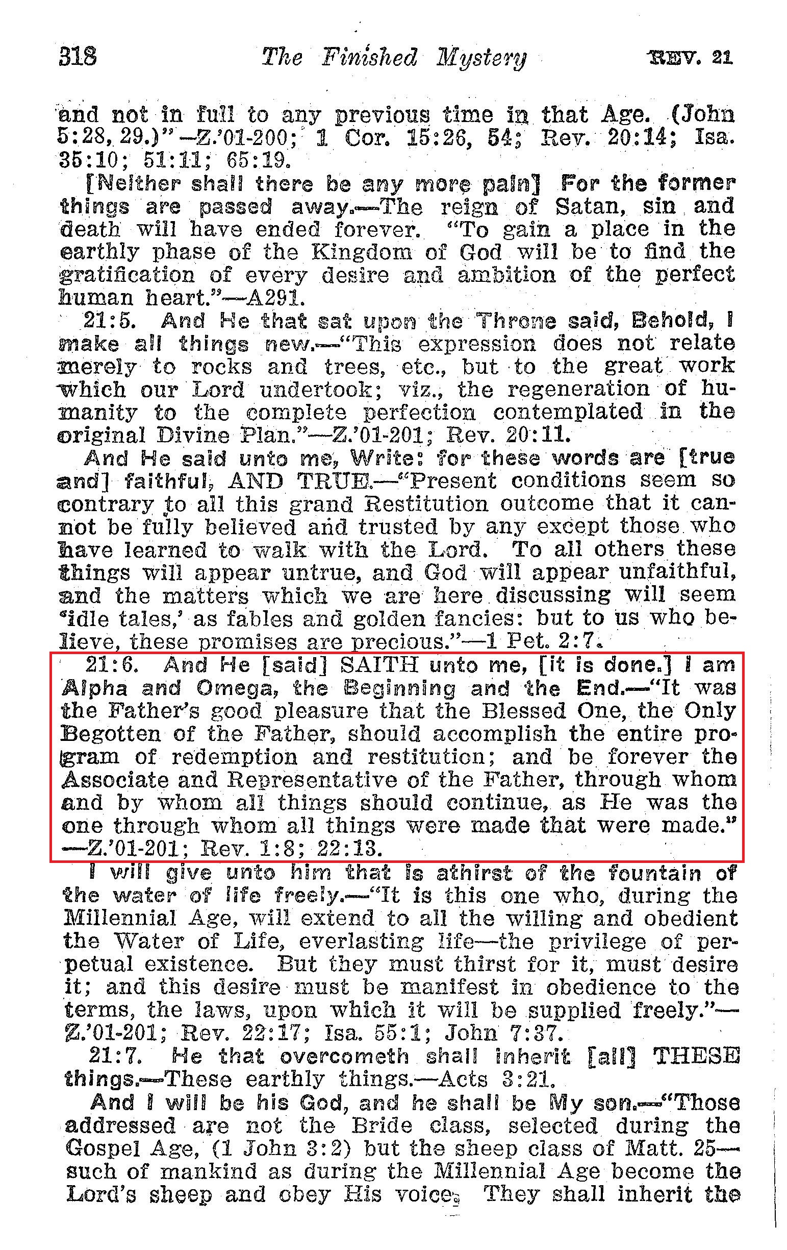 - Z.'01-201; Rev. 1:8; 22:13. Source : 🇺🇸 1917-1923 - Studies in the Scriptures, Vol 7, The finished mystery (1923 edition) page 318 |