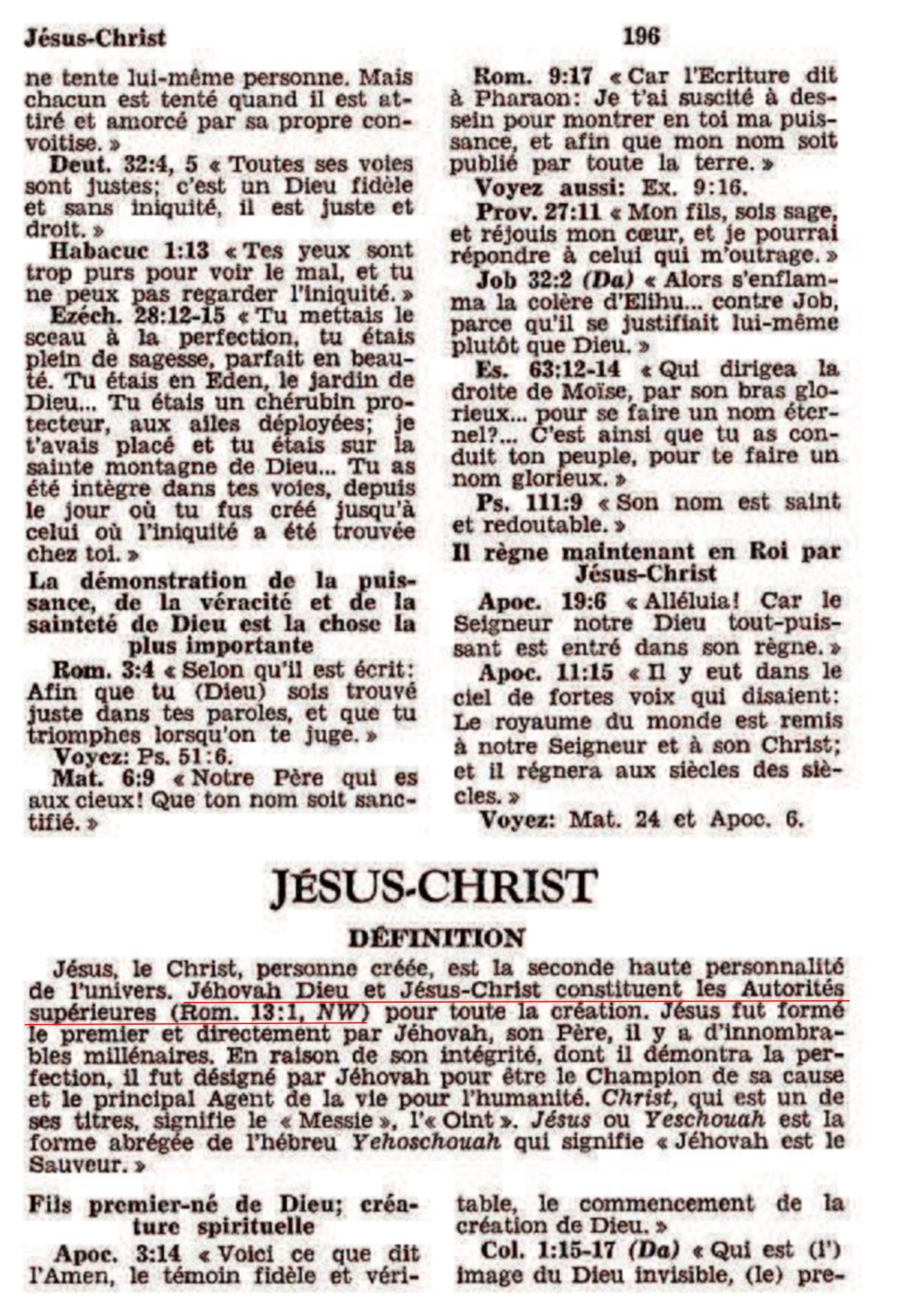 [...] mais que Jéhovah est l'Etre suprême, et que lui et son Fils constituent «les autorités supérieures». (Romains 13:1)