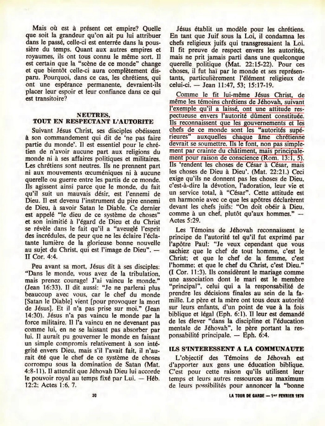 Source : 🇫🇷 La Tour de Garde, 1 Février 1978, page 30 + Cover |