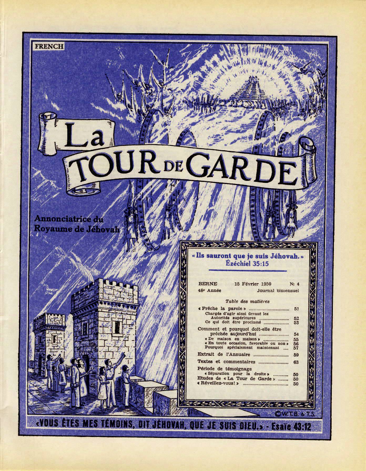 Source : 🇫🇷 La Tour de Garde, 15 Fev 1950, page 52 + Cover |