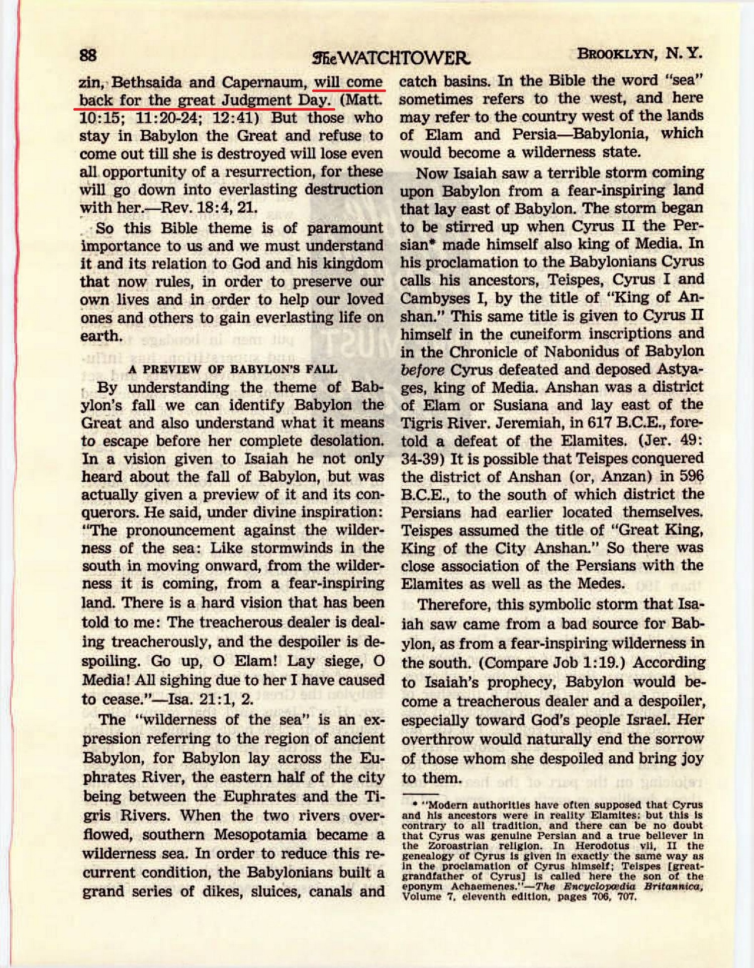 What does Jesus mean by this? Evidently he is showing that, during Judgment Day when proud ones in Capernaum are resurrected, it will be more difficult for them to admit their mistakes and accept Christ than it will be for the resurrected ancient Sodomites to repent humbly and learn righteousness. Source : 🇺🇸 The Watchtower, January 15 1987, page 25 + Cover |
