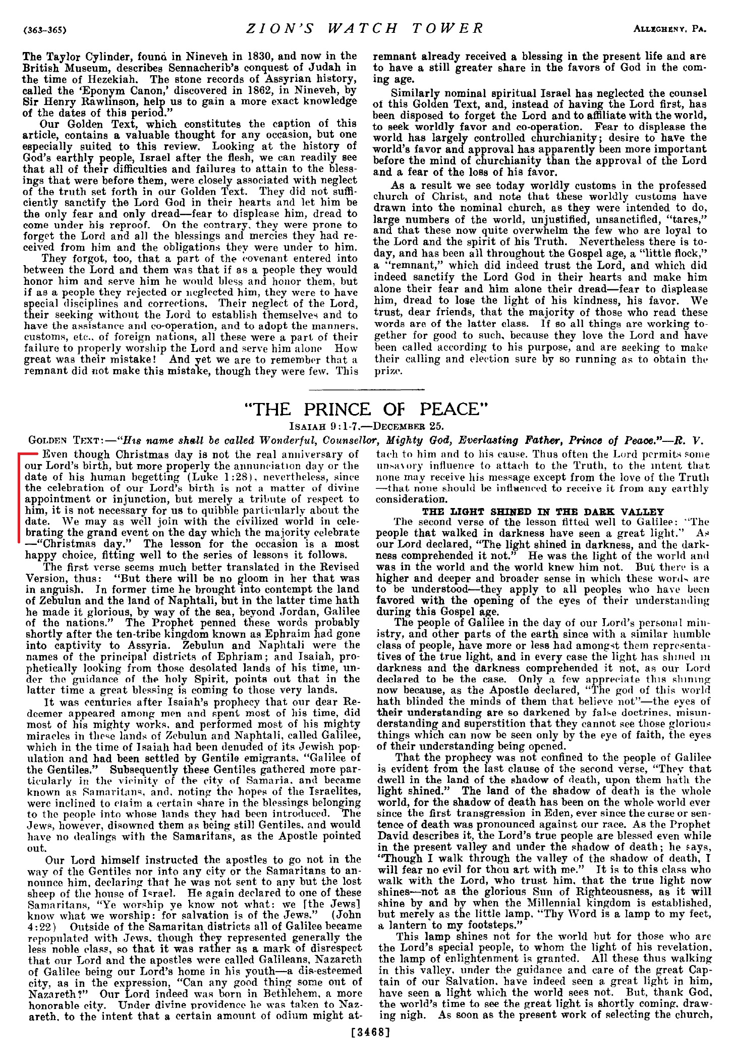 Source : 🇺🇸 Zion's Watch Tower 1904 Dec 1 page 364, R3468, "The Prince of Peace" |