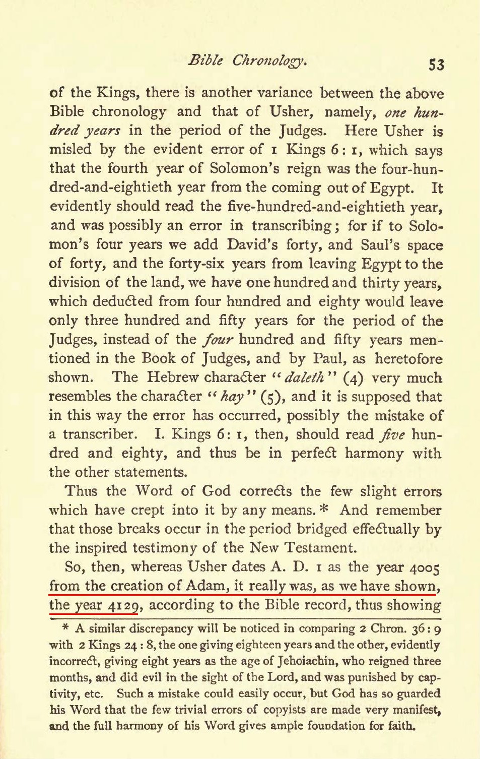 So, then whereas Usher dates A.D. I as the year 4005 from the creation of Adam, it really was, as we have shown, the years 4129,