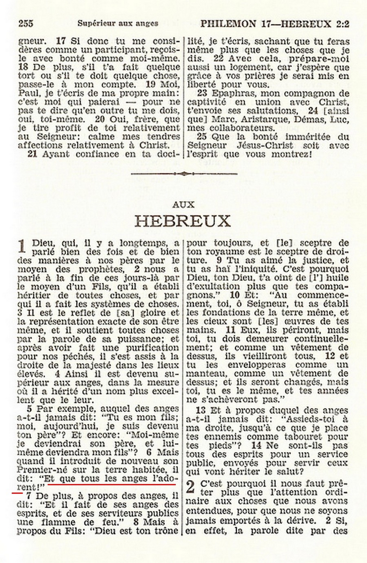 "Question. Le fait que notre Seigneur ait reçu l'adoration est revendiquée par certains comme une preuve que, pendant qu'il était sur terre, il était Dieu le Père déguisé dans un corps de chair et n'était pas vraiment un homme. Était-il vraiment adoré, ou bien la 🇫🇷 Traduction est-elle fausse ? Réponse. Oui, nous croyons que notre Seigneur Jésus sur terre était vraiment adoré , et à juste titre. (...) il était LEGITIME pour notre Seigneur de recevoir L’ADORATION , étant le seul engendré du Père et son agent dans la création de toutes choses, y compris l'homme."