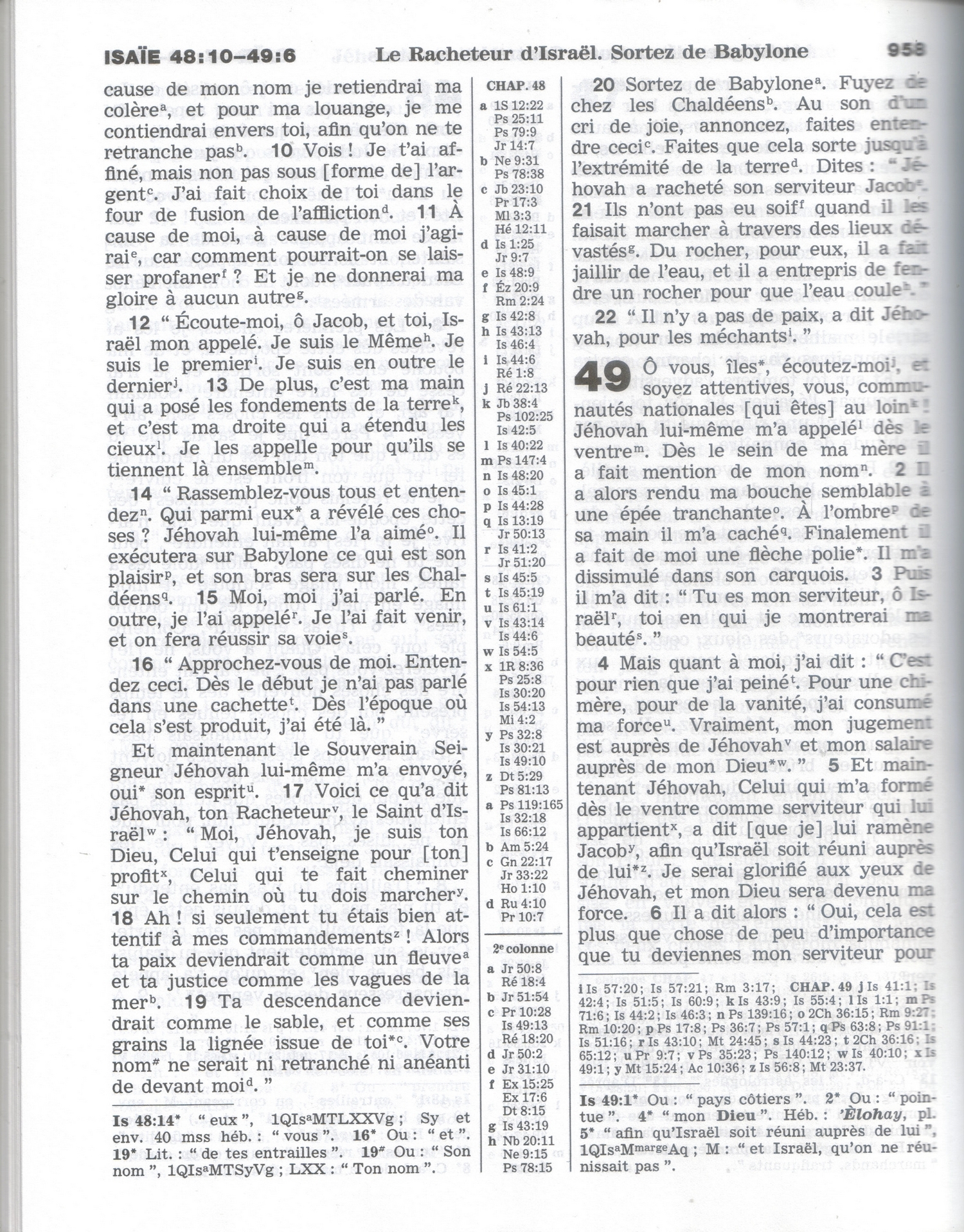 À cause de moi, à cause de moi j’agirai, car comment pourrait-on se laisser profaner ? Et je ne donnerai ma gloire à aucun autre. 12 “ Écoute-moi, ô Jacob, et toi, Israël mon appelé. Je suis le Même. Je suis le premier1. Je suis en outre le dernier2.