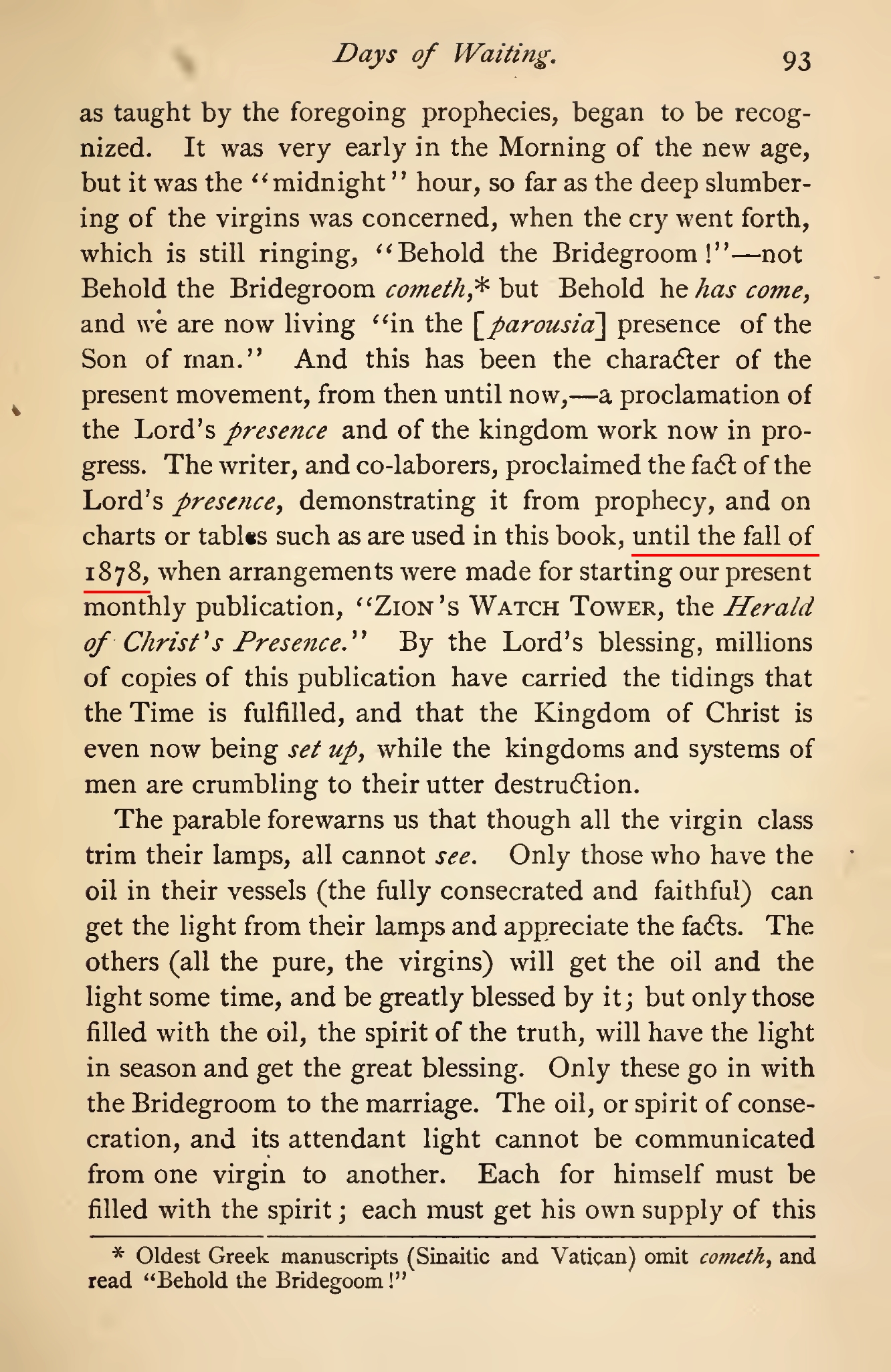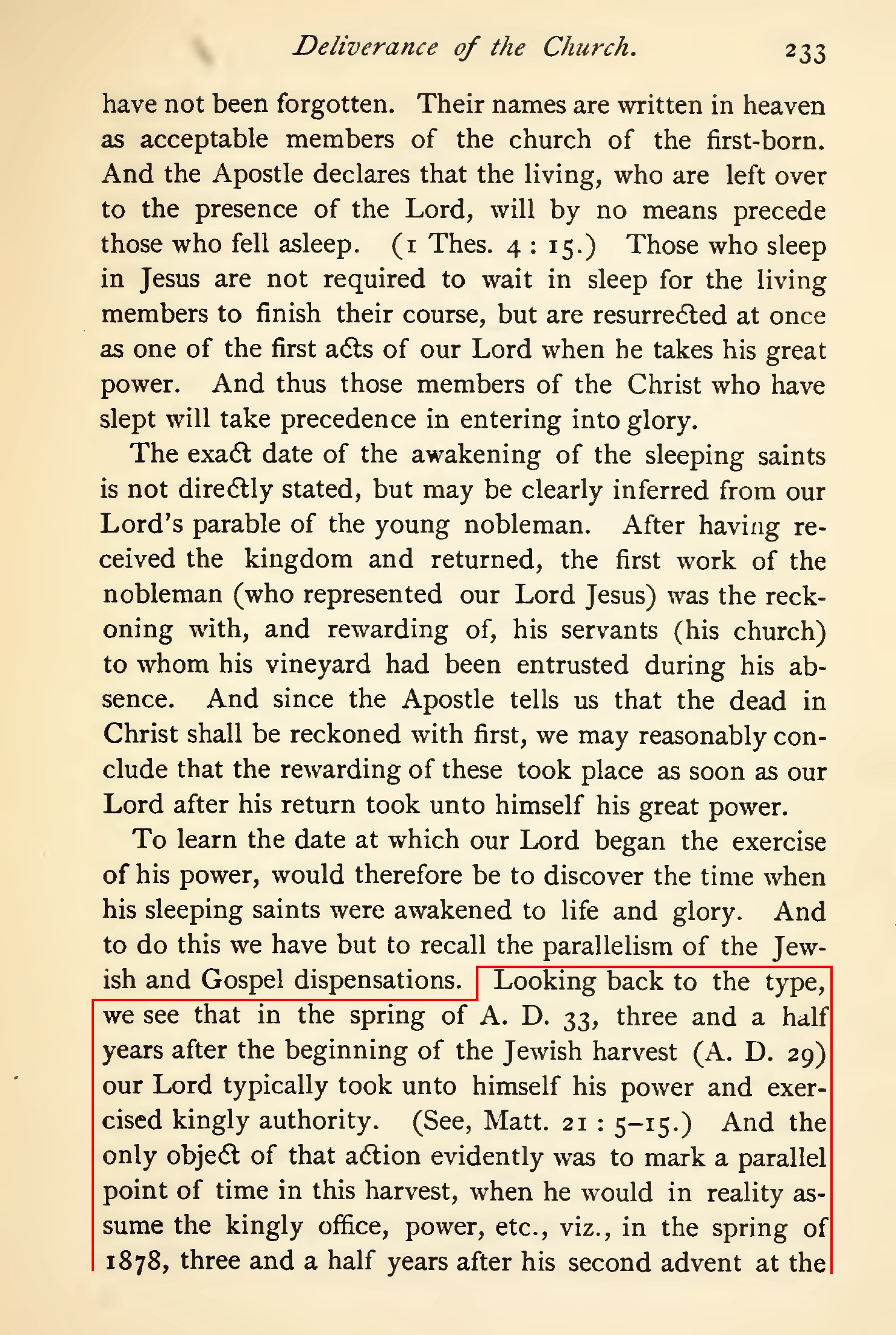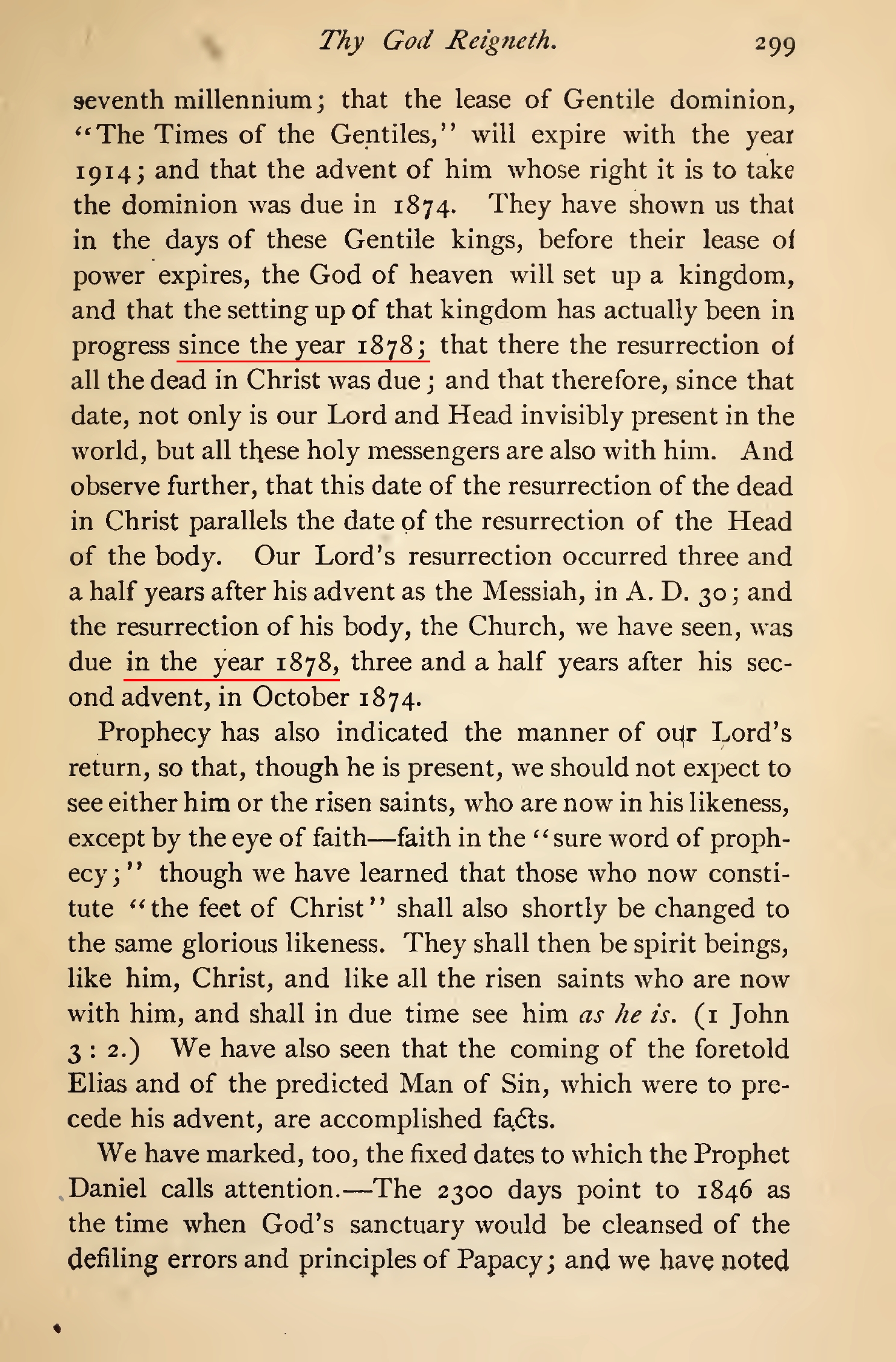 An approximate return of Jesus: 1878