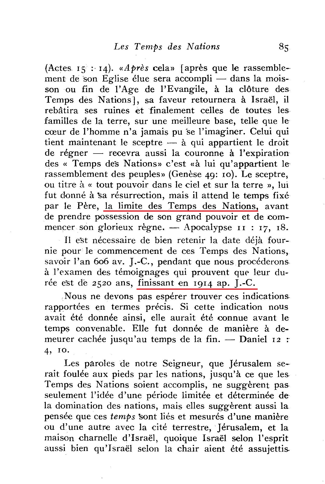 *** "la fin des temps des Gentils" de Russell n'a pas le même contenu que celui des TJ actuels ! ***