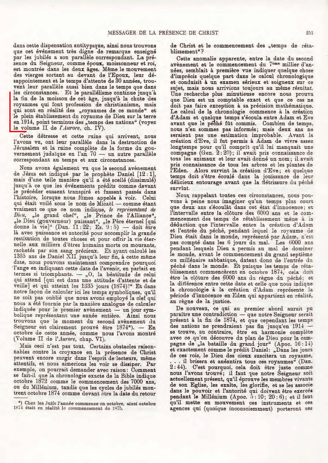 Par exemple, dans l'édition de 1903 des Études des Écritures, Vol. 2. p. 97, Russell déclare :