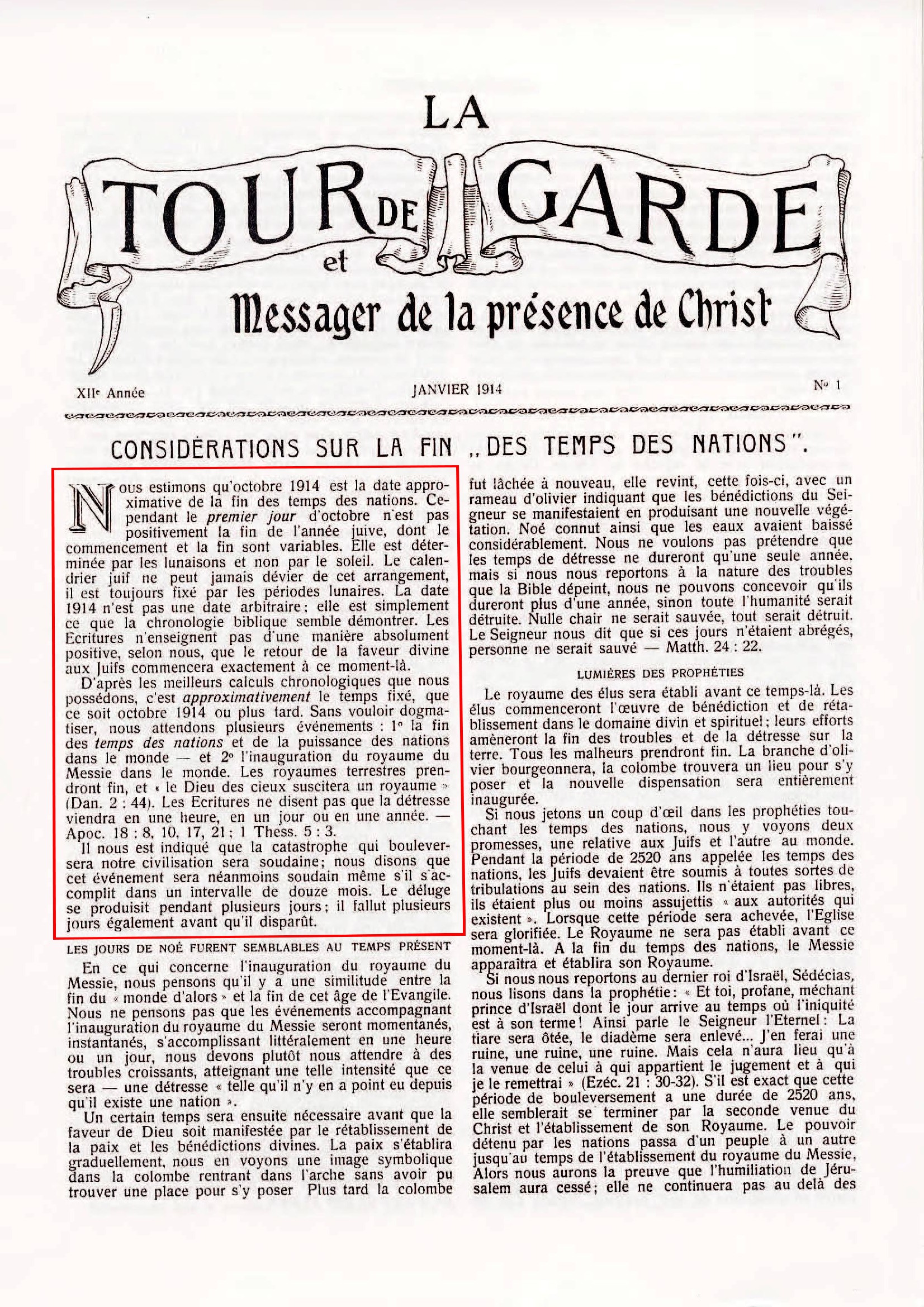 « Les fausses prophéties concernant l'année 1914 »