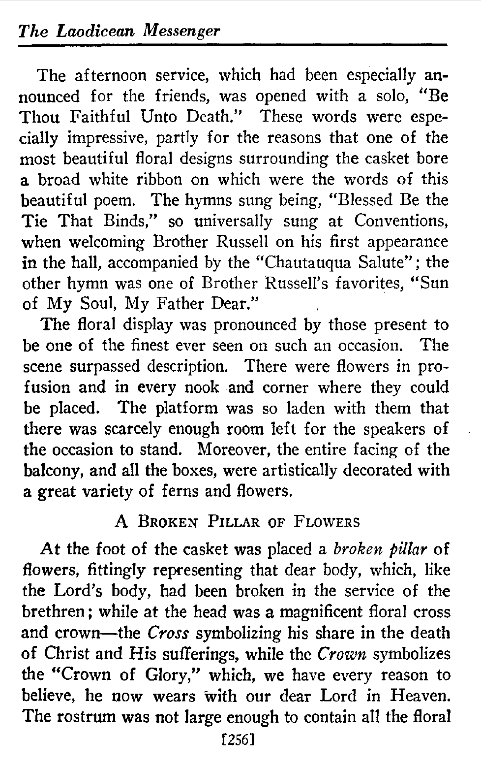 Note : le pasteur Russell est mort enveloppé dans une « toge romaine » (qu’il avait lui-même réclamée) le jour d’Halloween,