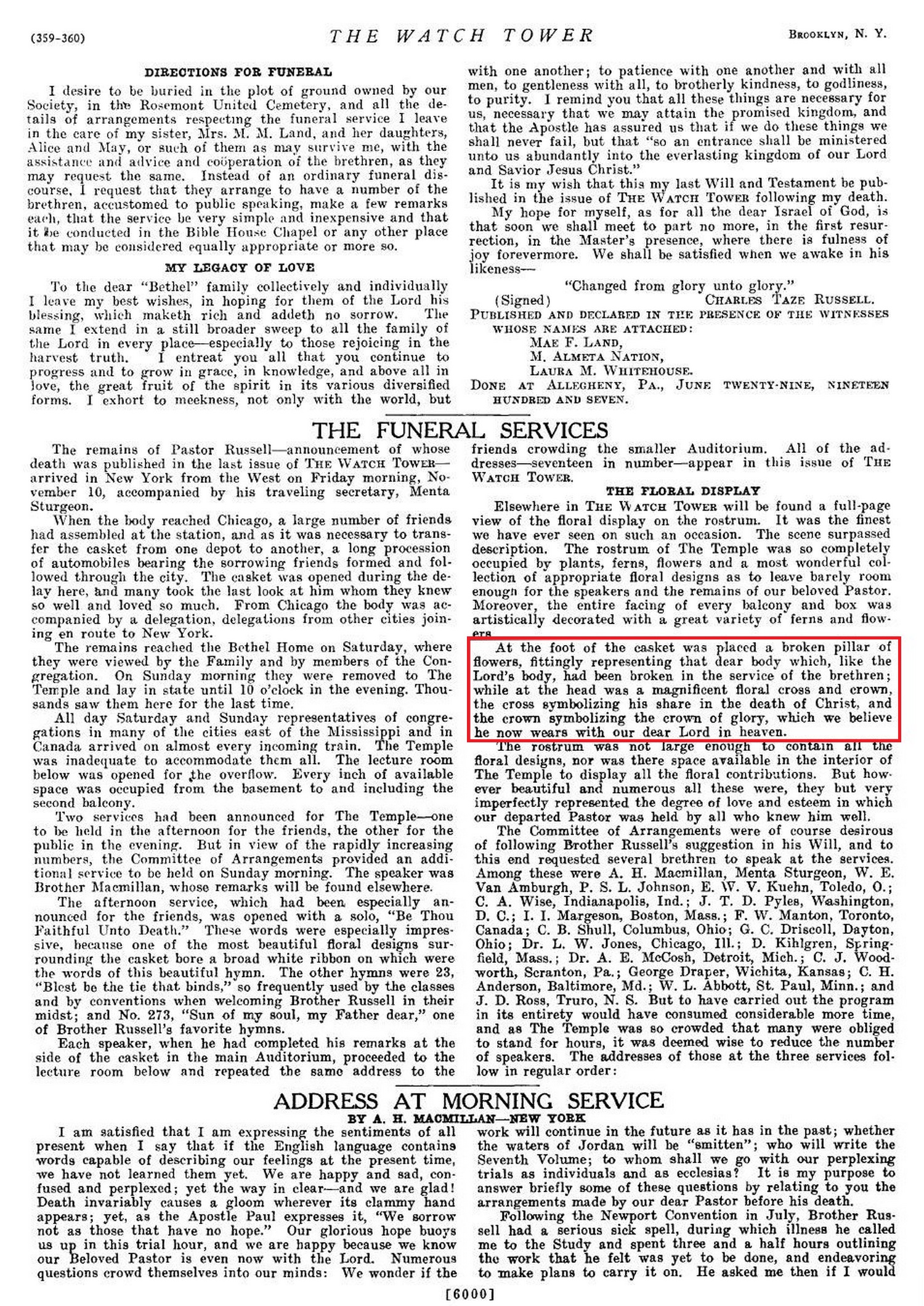 Ceux-ci sont mentionnés dans le périodique « Watchtower » du 1er décembre 1916 (version anglaise de La Tour de Garde) :