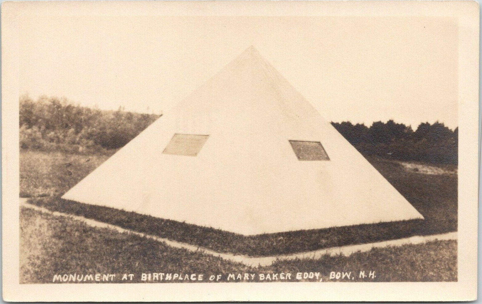 En 1921, à l’occasion du 100e anniversaire de la naissance d’Eddy, une pyramide de 100 tonnes (brut) et de 60 à 70 tonnes (taillée), avec une empreinte au sol de 121 pieds carrés (11,2 m2), a été consacrée sur le site de son lieu de naissance à Bow, New Hampshire. Cadeau de James F. Lord, elle a été dynamitée en 1962 sur ordre du conseil d’administration de l’Église. L’ancienne maison d’Eddy à Pleasant View a également été démolie, car le Conseil craignait qu’elle ne devienne un lieu de pèlerinage. Eddy est présentée sur un marqueur historique du New Hampshire (numéro 105), le long de la route 9 du New Hampshire, à Concord.