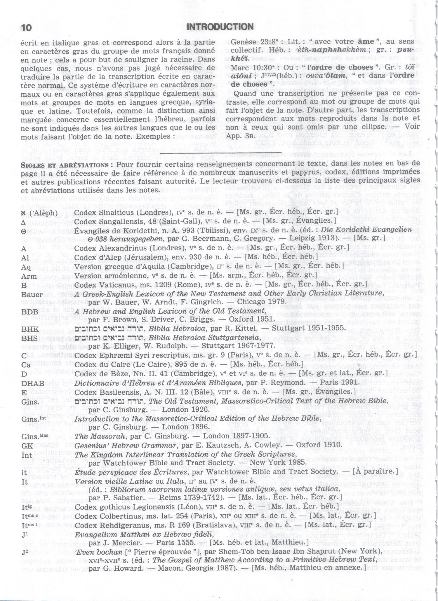 Voyons à quoi correspondent ces différentes références. Pour ce faire, ouvrons la Traduction du monde nouveau avec notes et références (1995), page 10 et page 11, dans la partie « Introduction, Sigles et abréviations ». Également vérifiable (sur le site officiel des Témoins de Jéhovah).