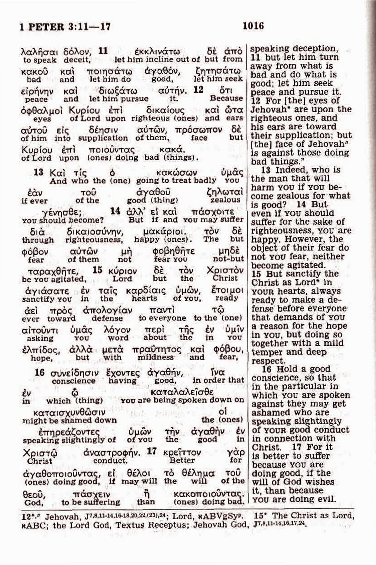 L’organisation donne les mêmes références dans la Kingdom Interlinear Translation of the Greek Scriptures (édition 1985, page 1016) :