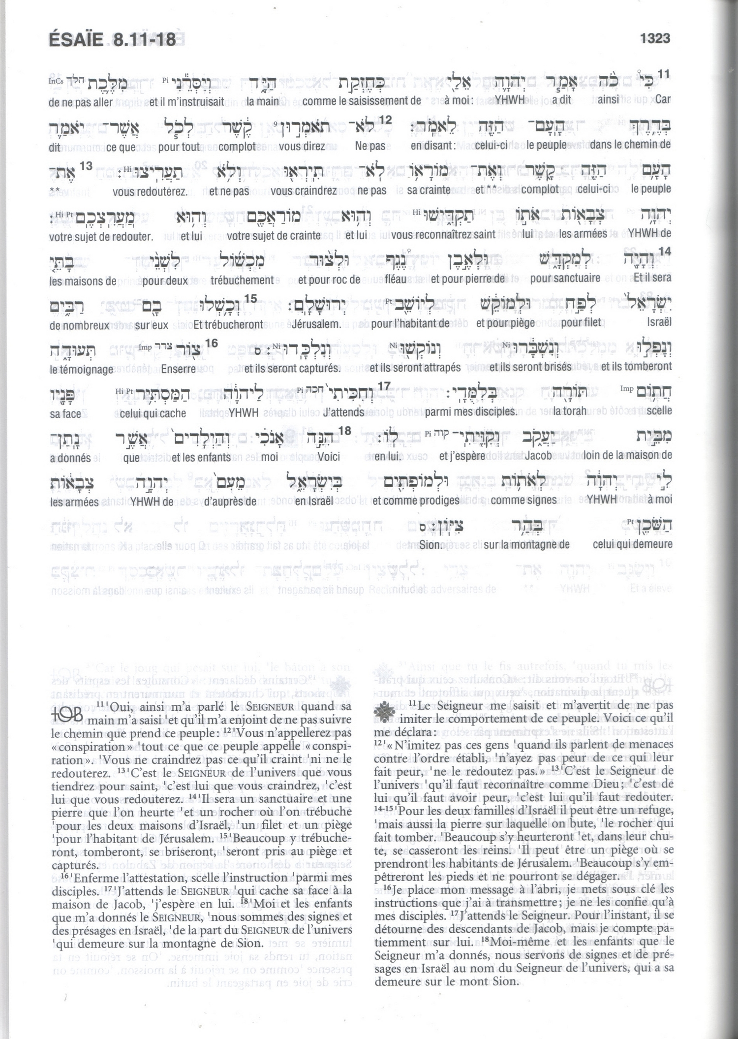 Or, 1 Pierre 3:14-15 est bien une citation d’Ésaïe 8:12-13, comme nous l’avons vu. Le Nom divin apparaît dans le texte hébreu. Vérifions-le dans l’Ancien Testament interlinéaire hébreu-français (préface), page 1323 :
