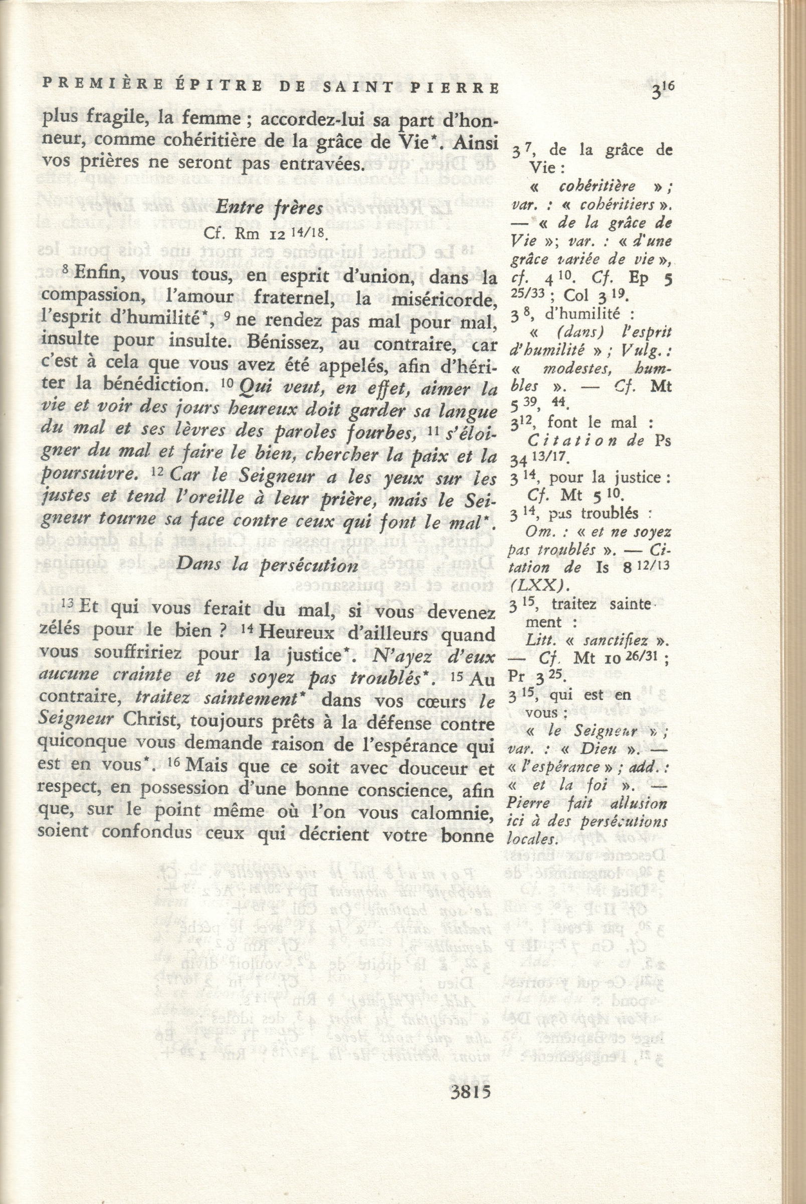 Dans la Bible de Jérusalem, on lit en 1 Pierre 3:15 : « Au contraire, sanctifiez dans vos cœurs le Seigneur Christ, toujours prêts à la défense contre quiconque vous demande raison de l’espérance qui est en vous. »