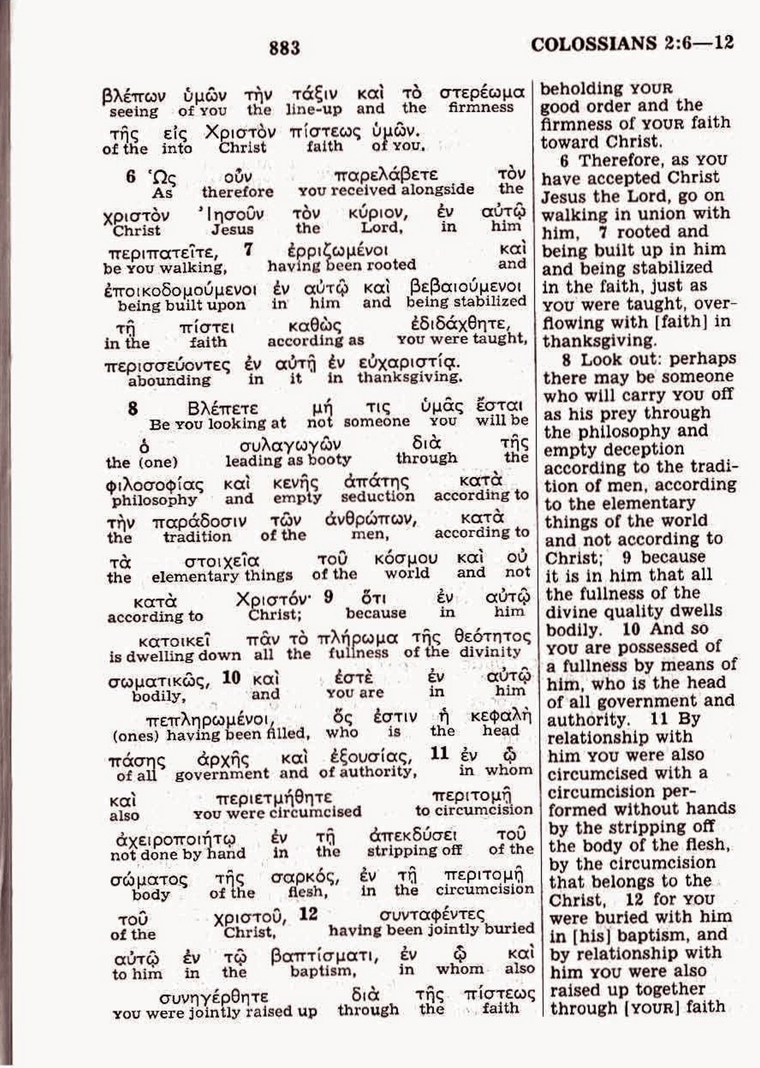 - For it is in Christ that the complete being of the Godhead dwells embodied, (Oxford / Cambridge University Press - 1961)