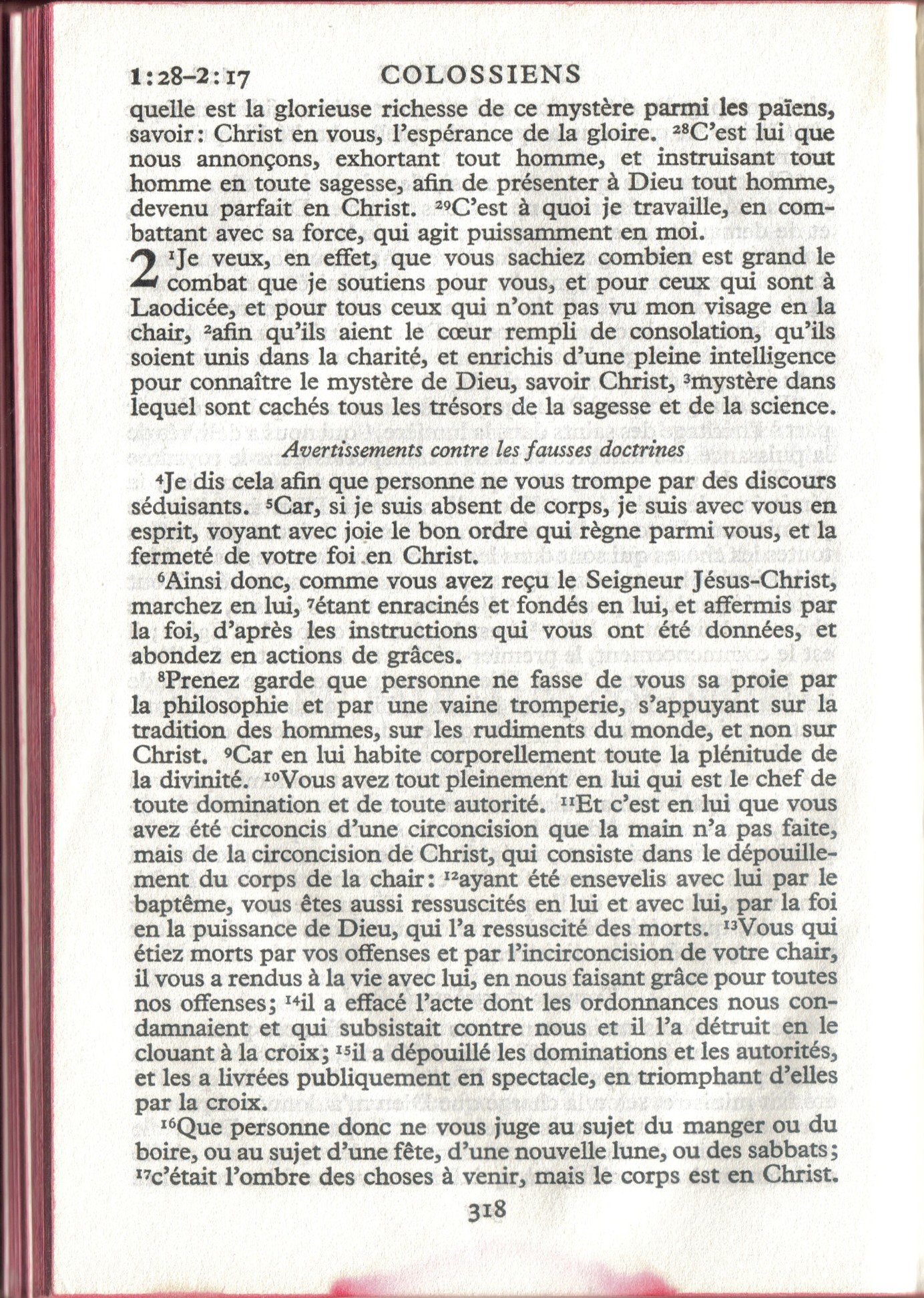 - Car en lui habite corporellement toute la plénitude de la divinité. (Traduction Louis Segond - 1956 + # + # + Segond 1910)