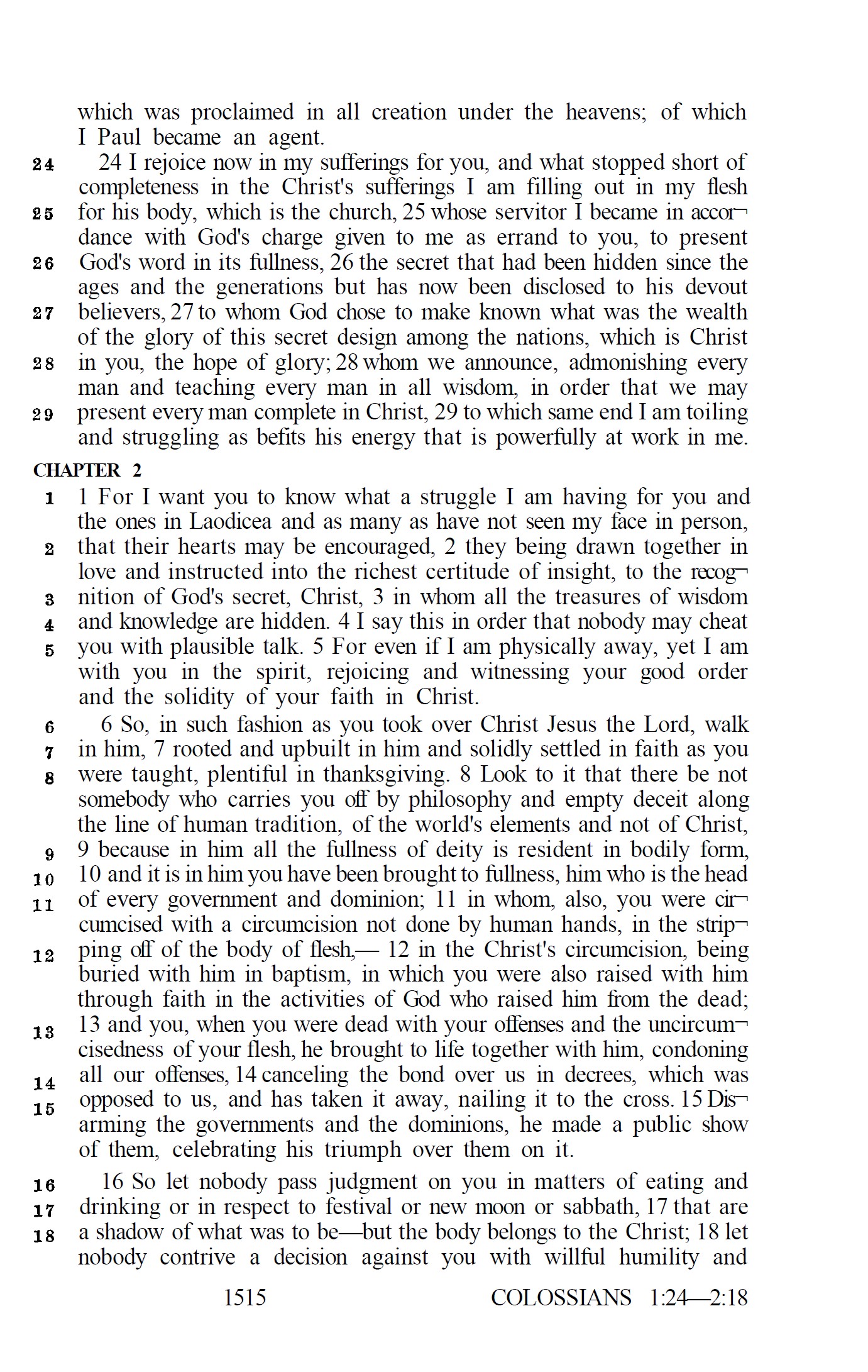 1537 ⇰ For in him dwelleth al the fulnes of the Godhead bodely, (La Bible de Matthew)