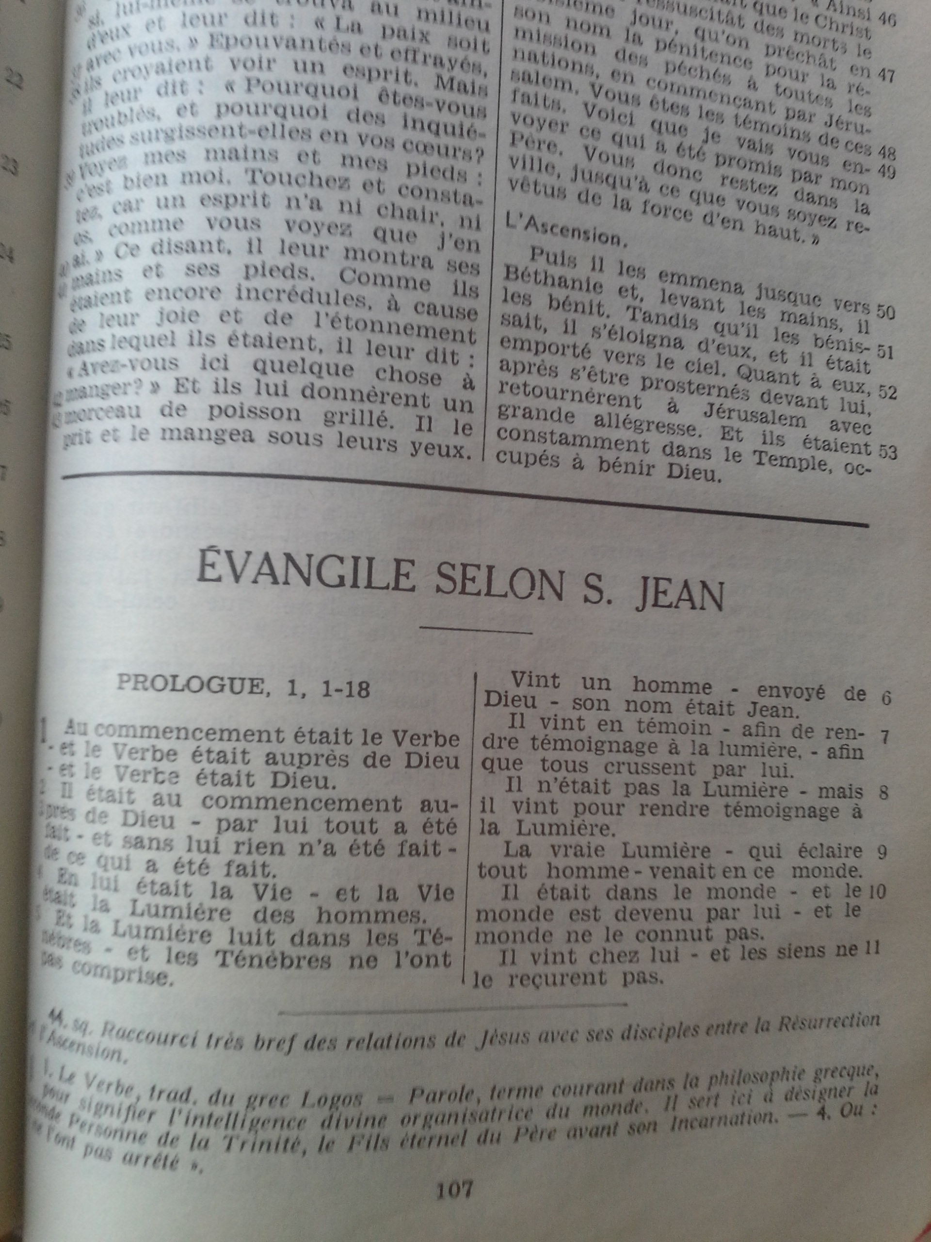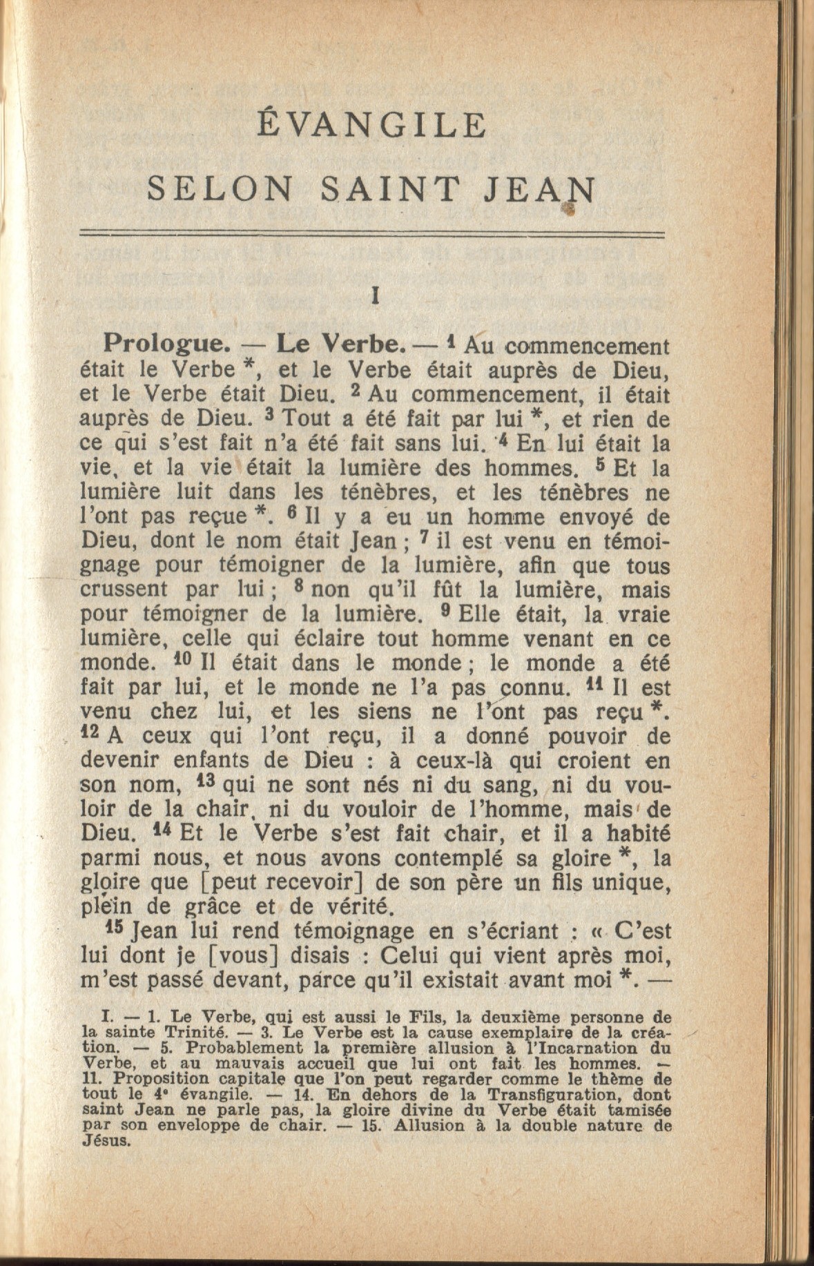 - Au commencement était le Verbe, et le Verbe était auprès de Dieu, et le Verbe était Dieu. (NT Annoté, Père Buzy - édition 1949)
