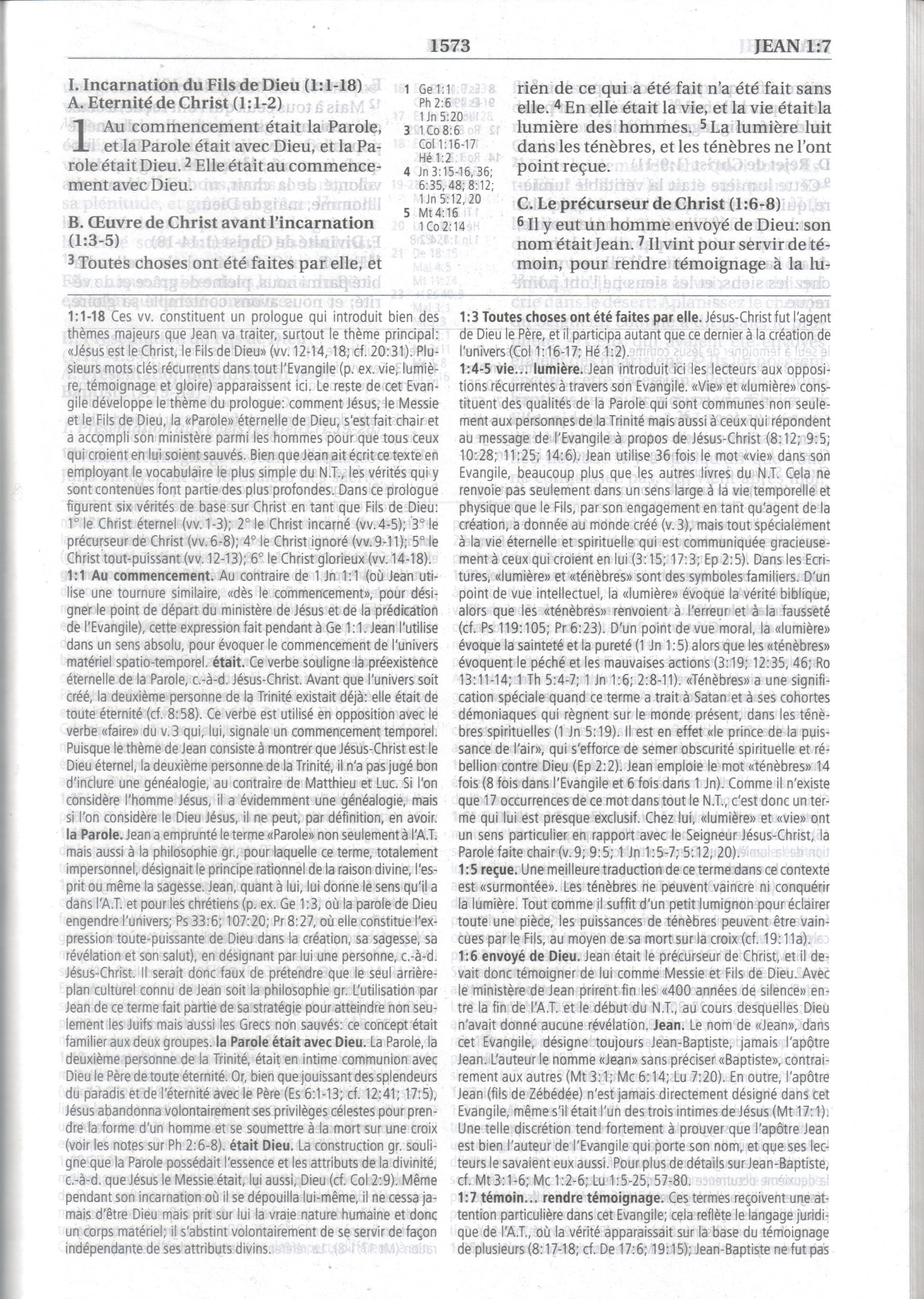 - Au commencement était la Parole, et la Parole était avec Dieu, et la Parole était Dieu. (Bible Annotée de Neufchâtel)