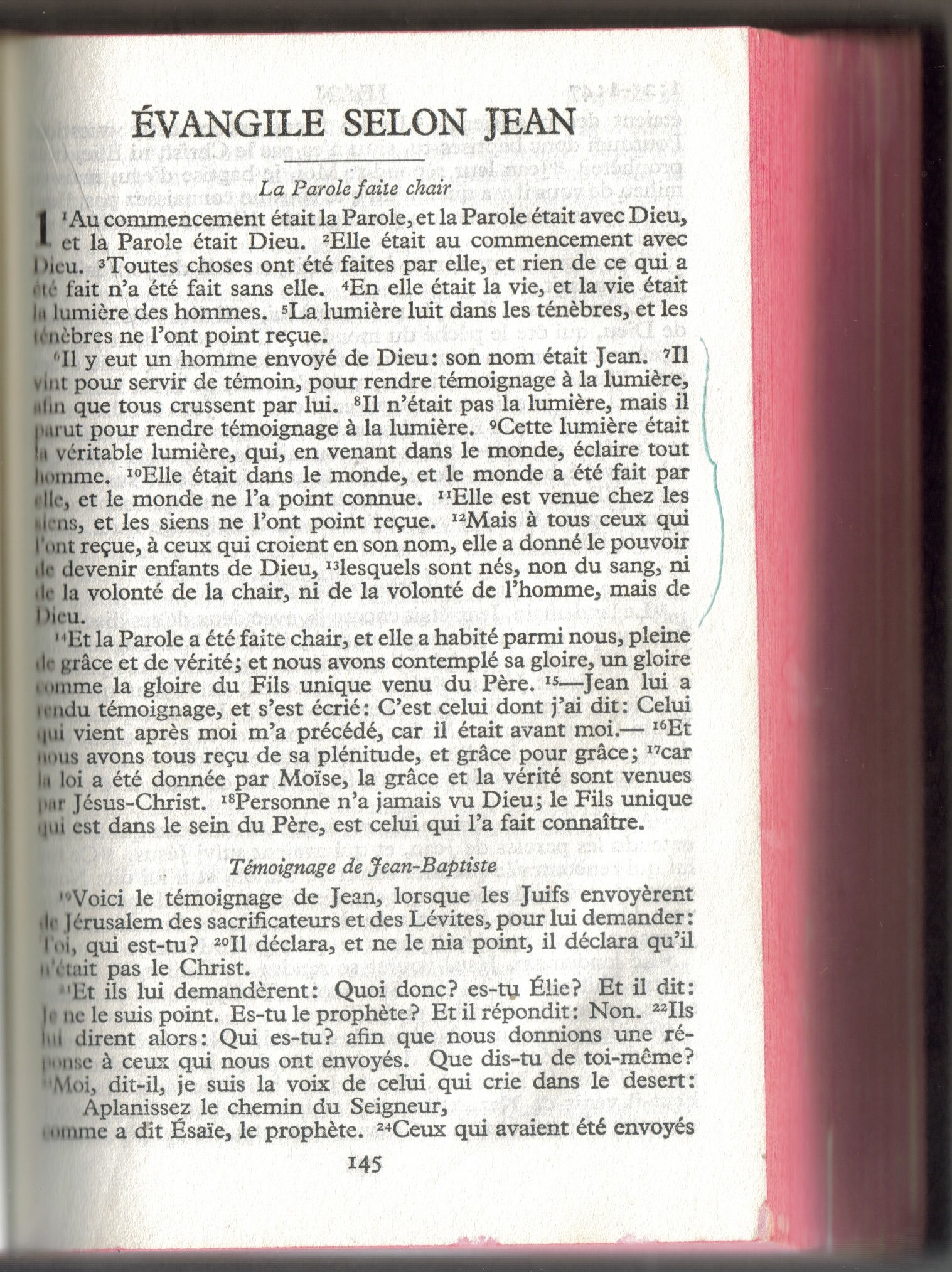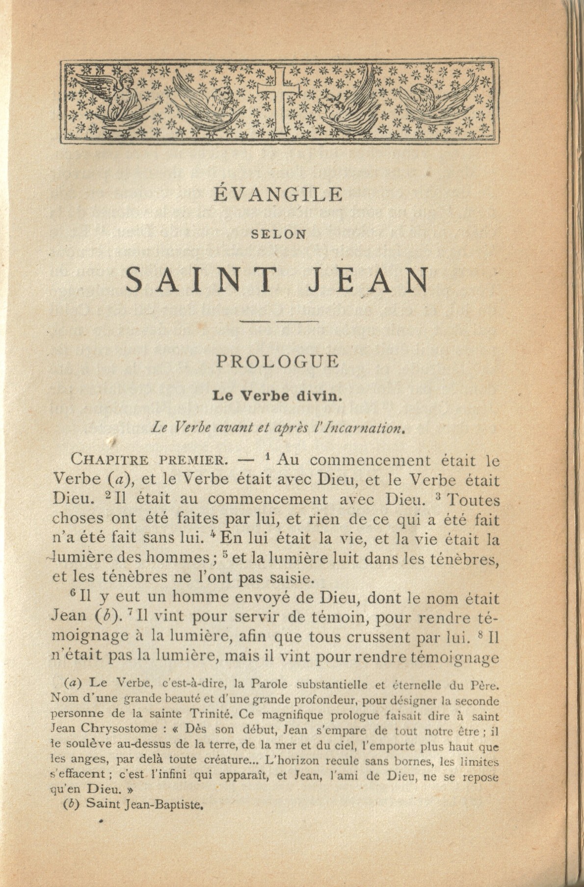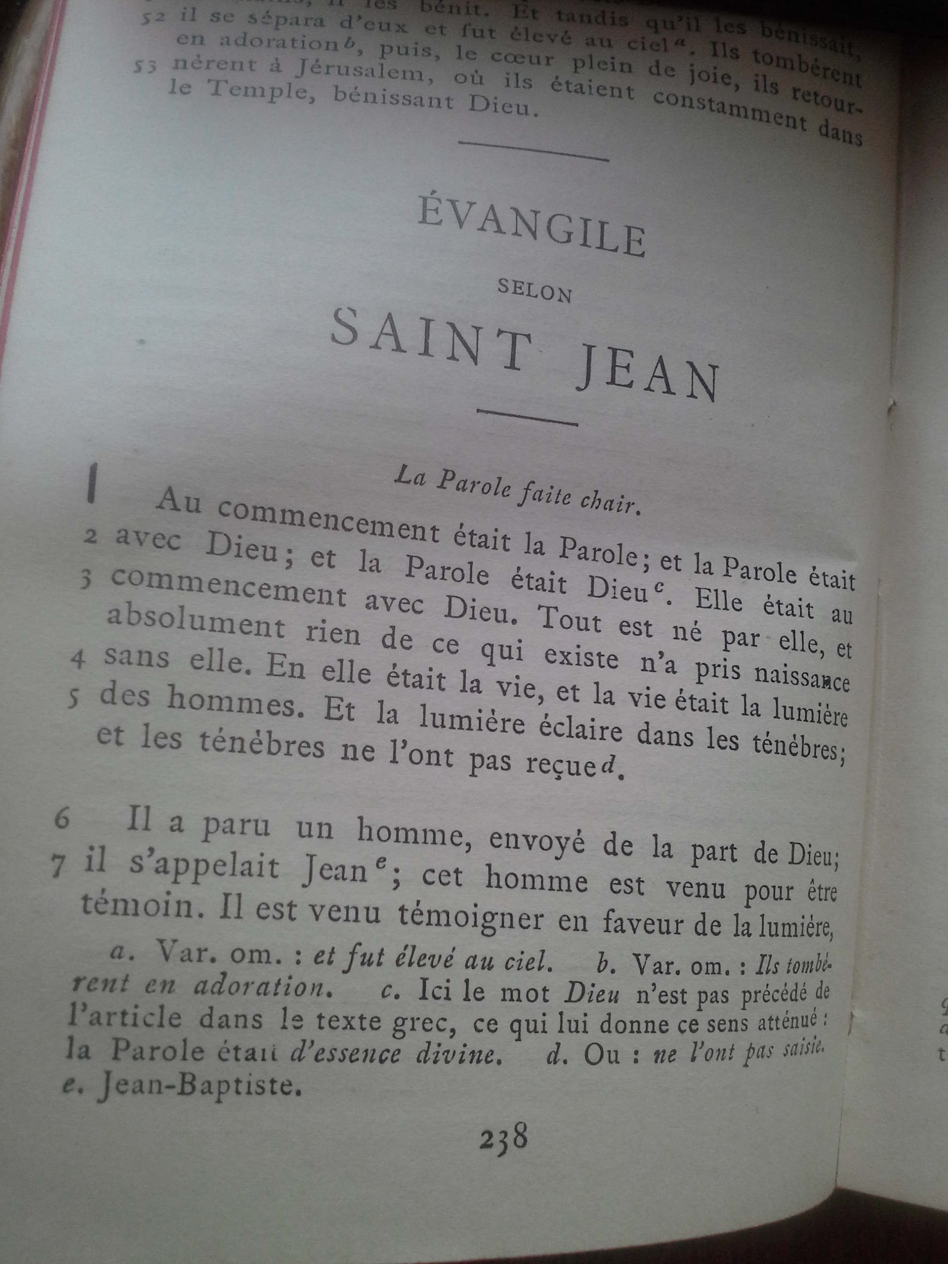 - Au commencement était le Verbe, et le Verbe était en Dieu, et le Verbe était Dieu. (Les Sts Evangiles, Crampon, Desclee et Cie, 1922)