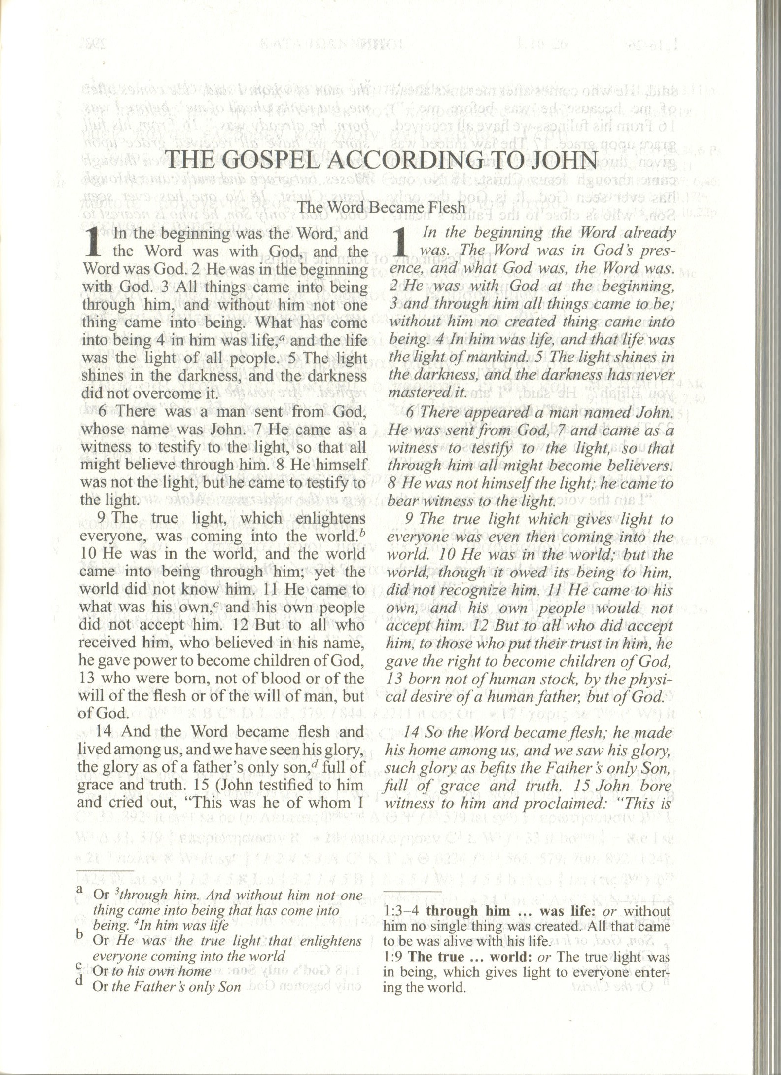 2) NRSV : In the beginning was the Word, and the Word was with God, and the Word was God.