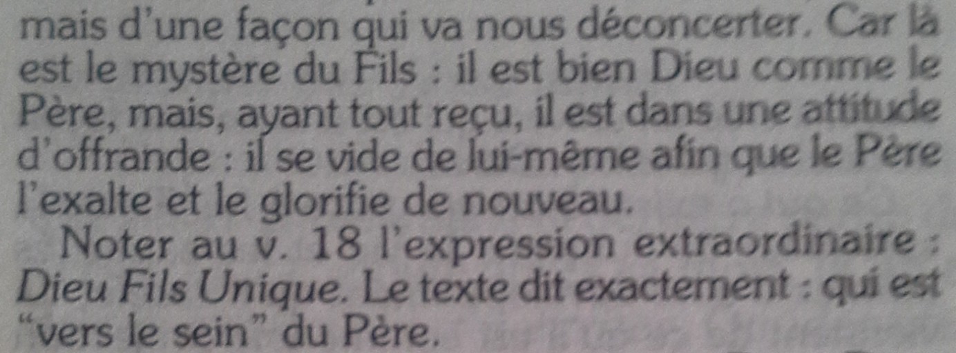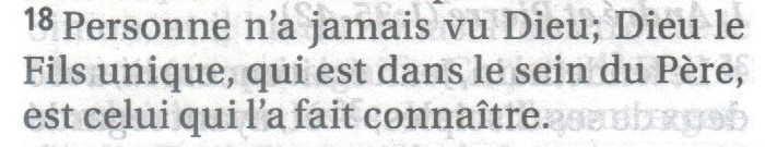 3) TOB (En haut à gauche) : Personne n'a jamais vu Dieu; Dieu fils unique, qui est dans le sein du Père, nous l'a dévoilé.