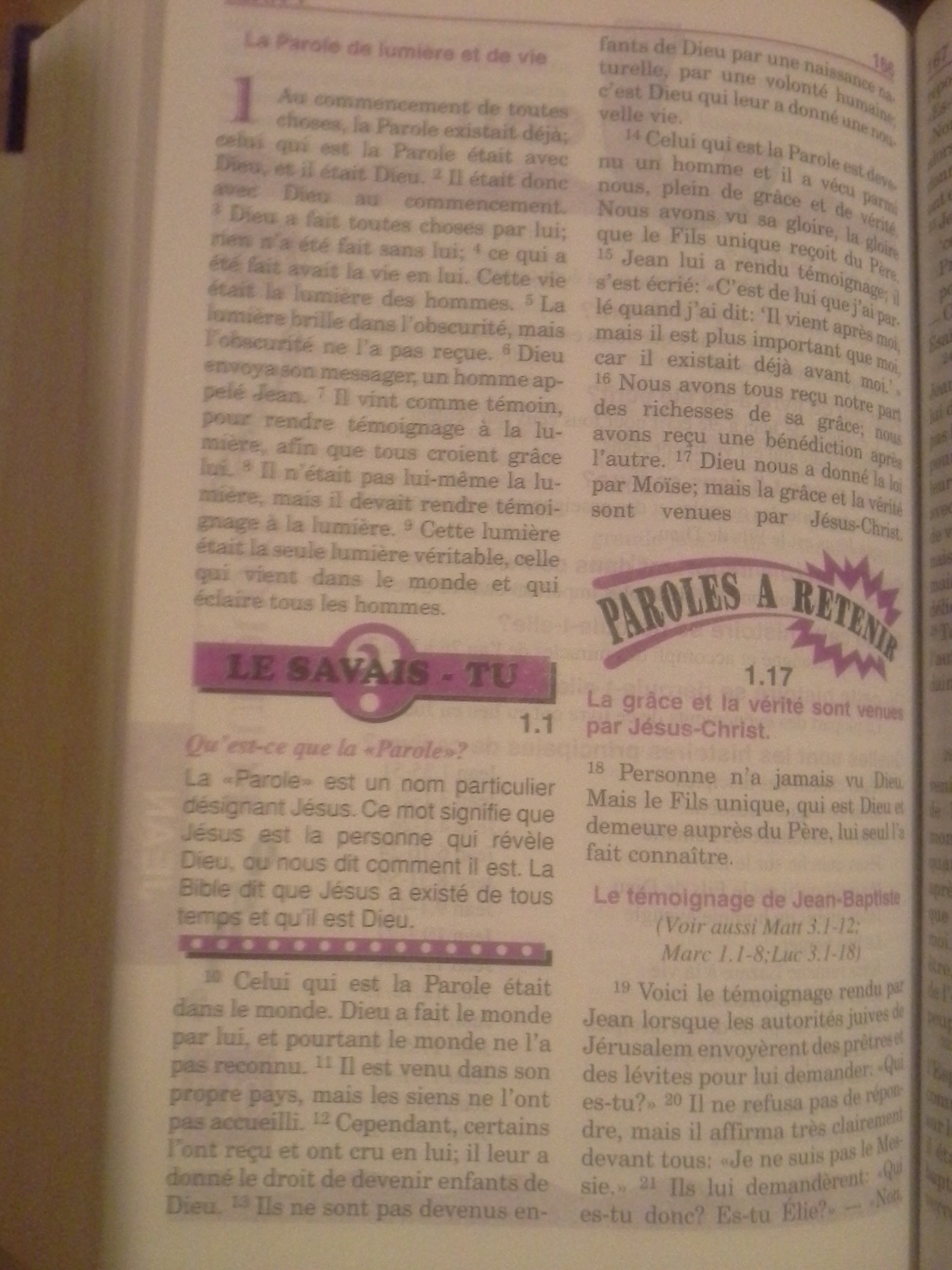 5) La Bible " Parole de Vie " : le Fils unique, qui est Dieu