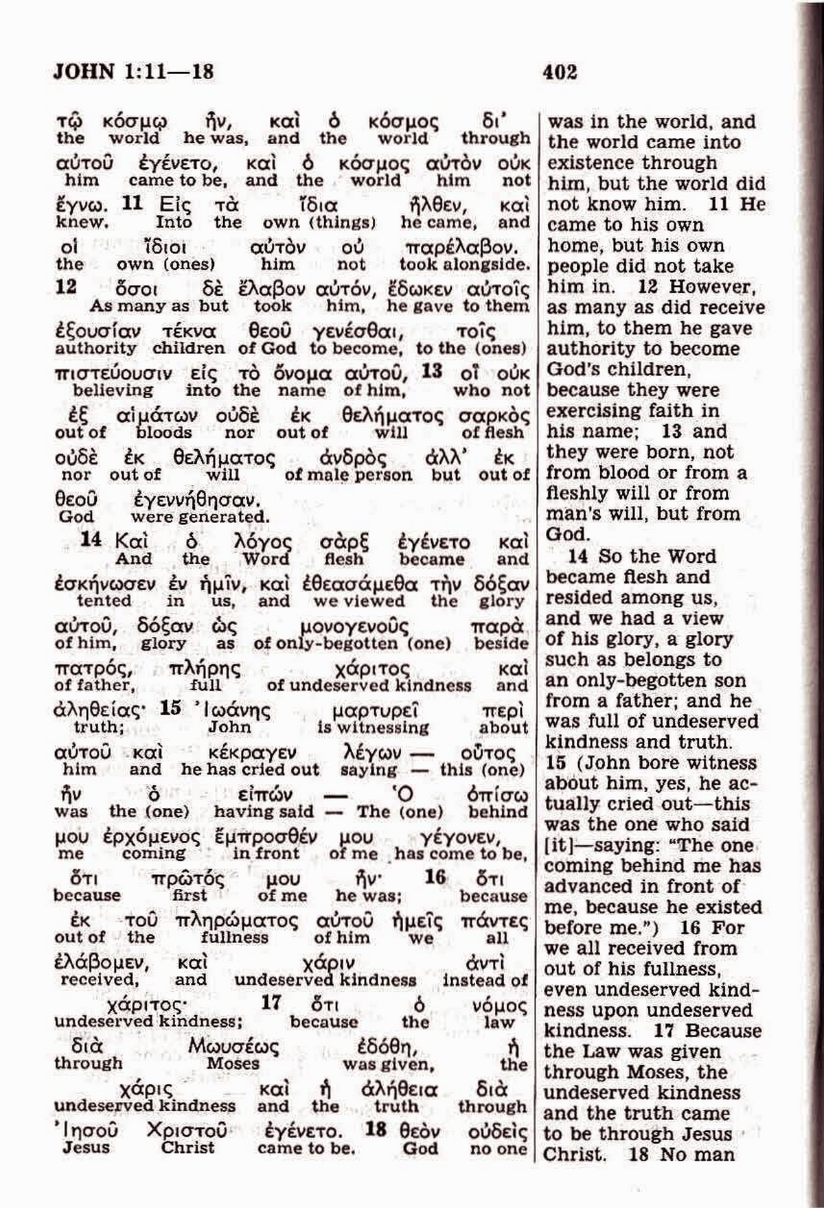 Bien que notre intérêt, dans ce verset, soit de savoir si le fils unique est "Dieu" ou "un dieu", je pense qu'il est tout de même bon de consulter le texte grec de la Watchtower (The Kingdom Interlinear Translation, page 402 et page 403) pour savoir si le texte grec dit "Père" ou "Dieu" :