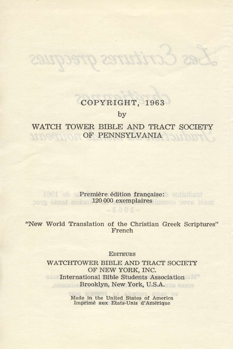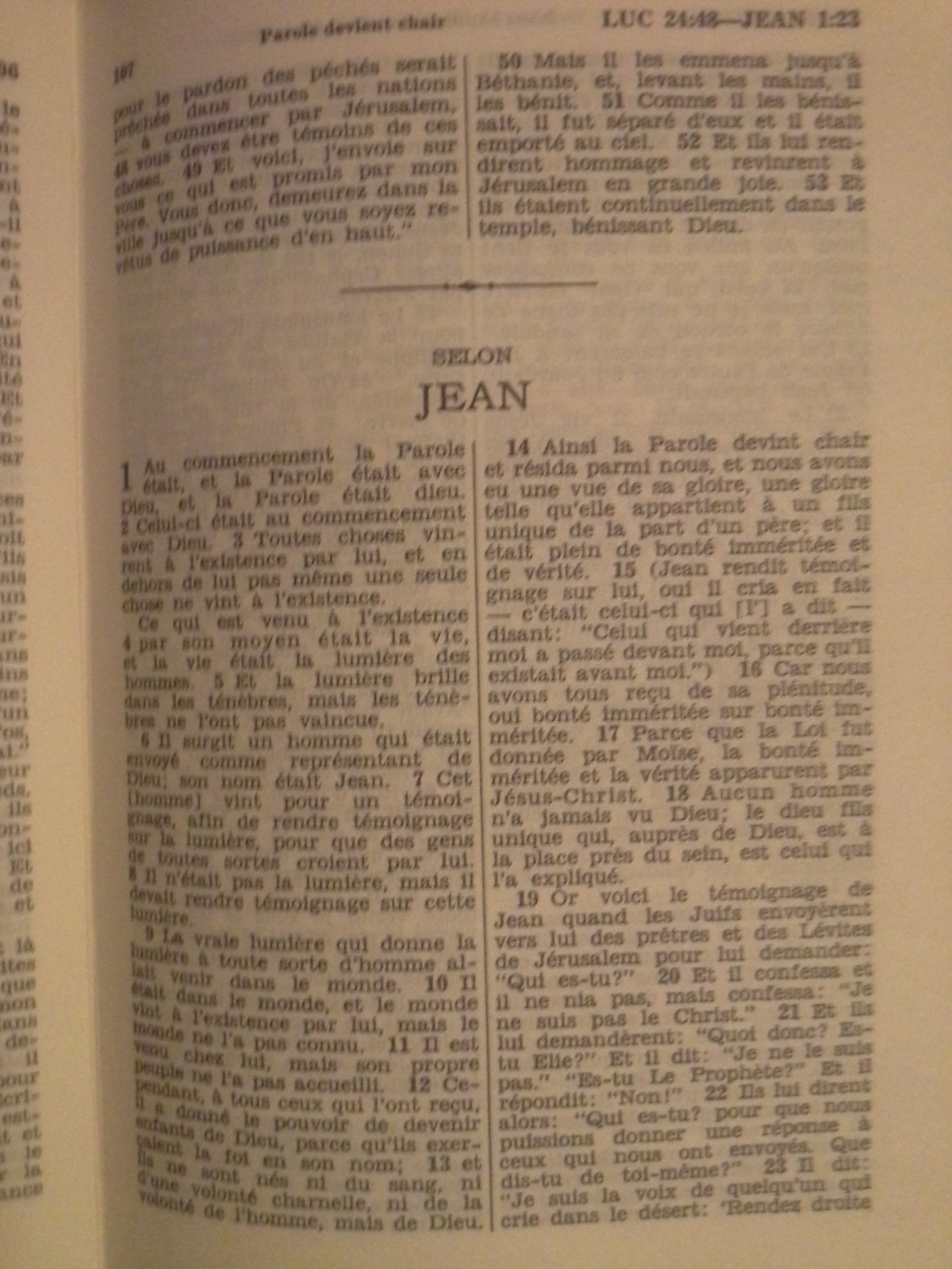 Remarque : D'après la Traduction de monde nouveau de 1963, le "dieu fils unique" (Jésus) se trouve auprès de Dieu ; alors que la version de 1974 nous dit que "le dieu fils unique" (Jésus) se trouve auprès du Père.