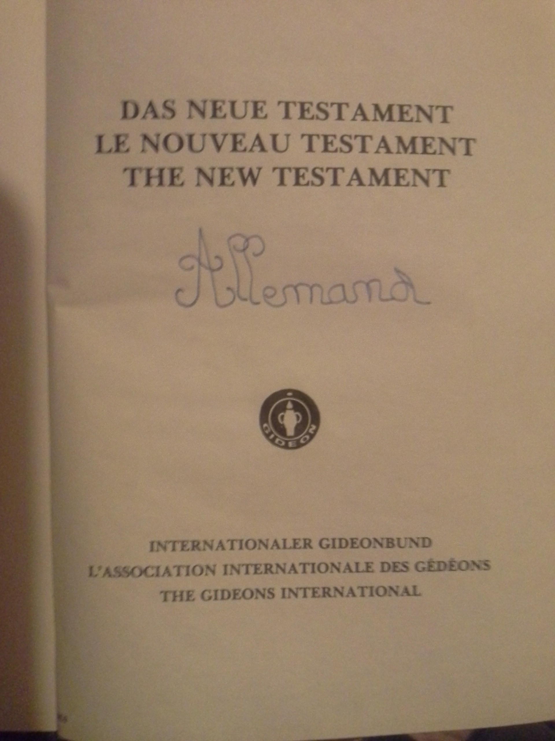 20) Nouveau Testament que distribue l'association chrétienne internationale "Les Gédéons" :