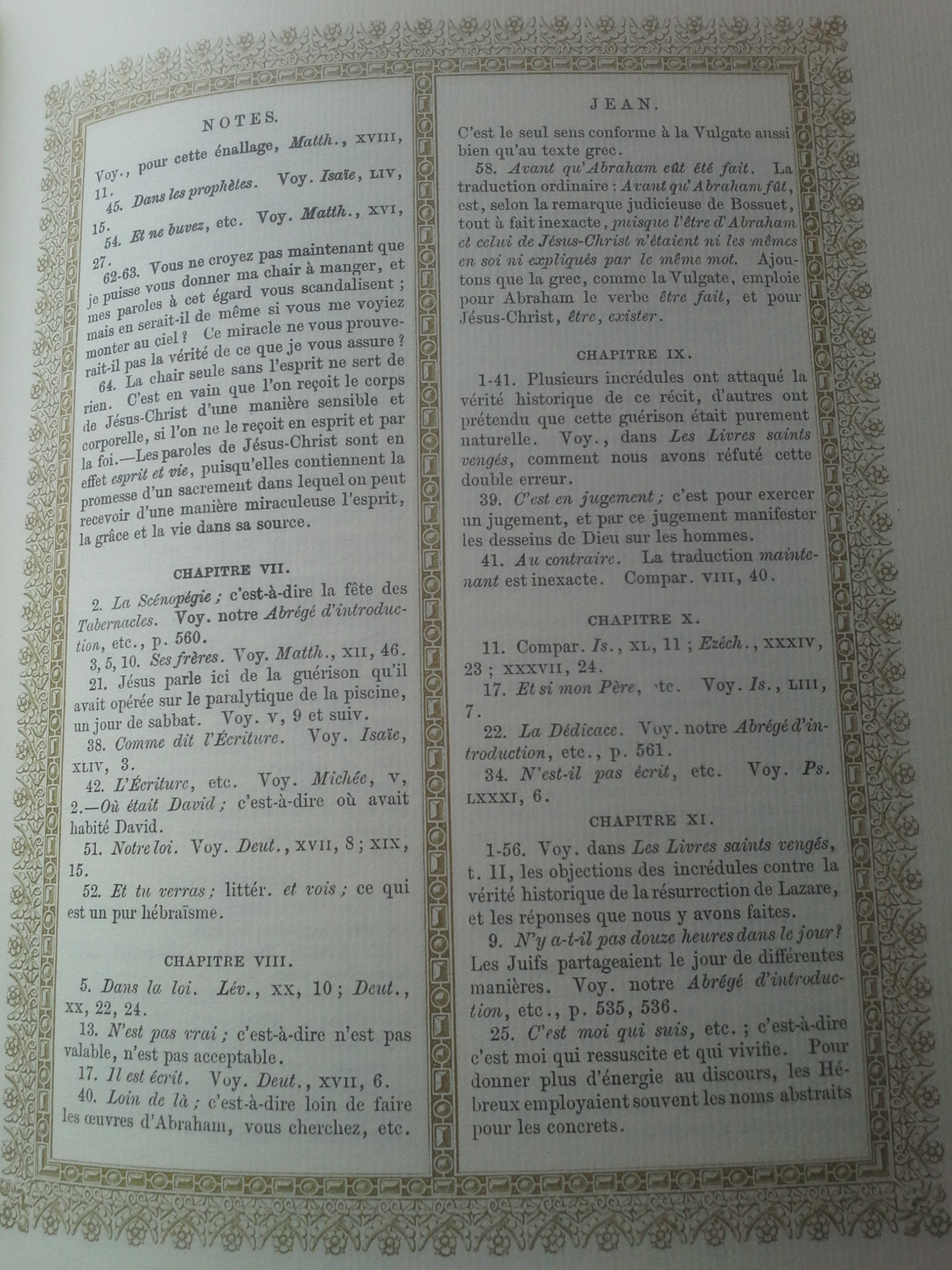 - En vérité, en vérité, je vous dis : Je suis avant qu'Abraham fût. (NT par LeMaistre de Sacy - version de 1844)