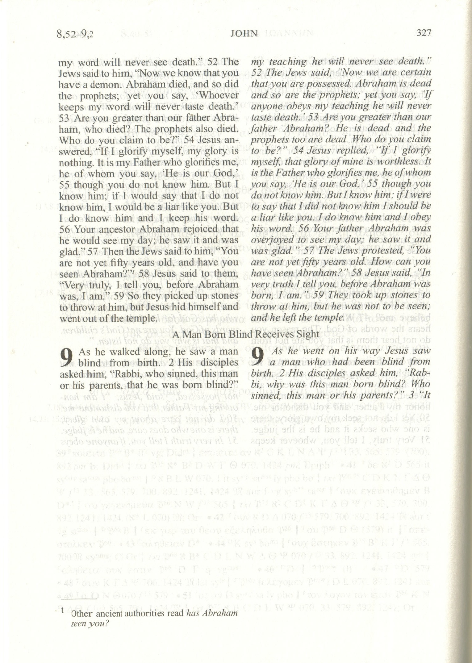 2) NRSV : Jesus said to them, ‘Very truly" I tell you, before Abraham was, I am."