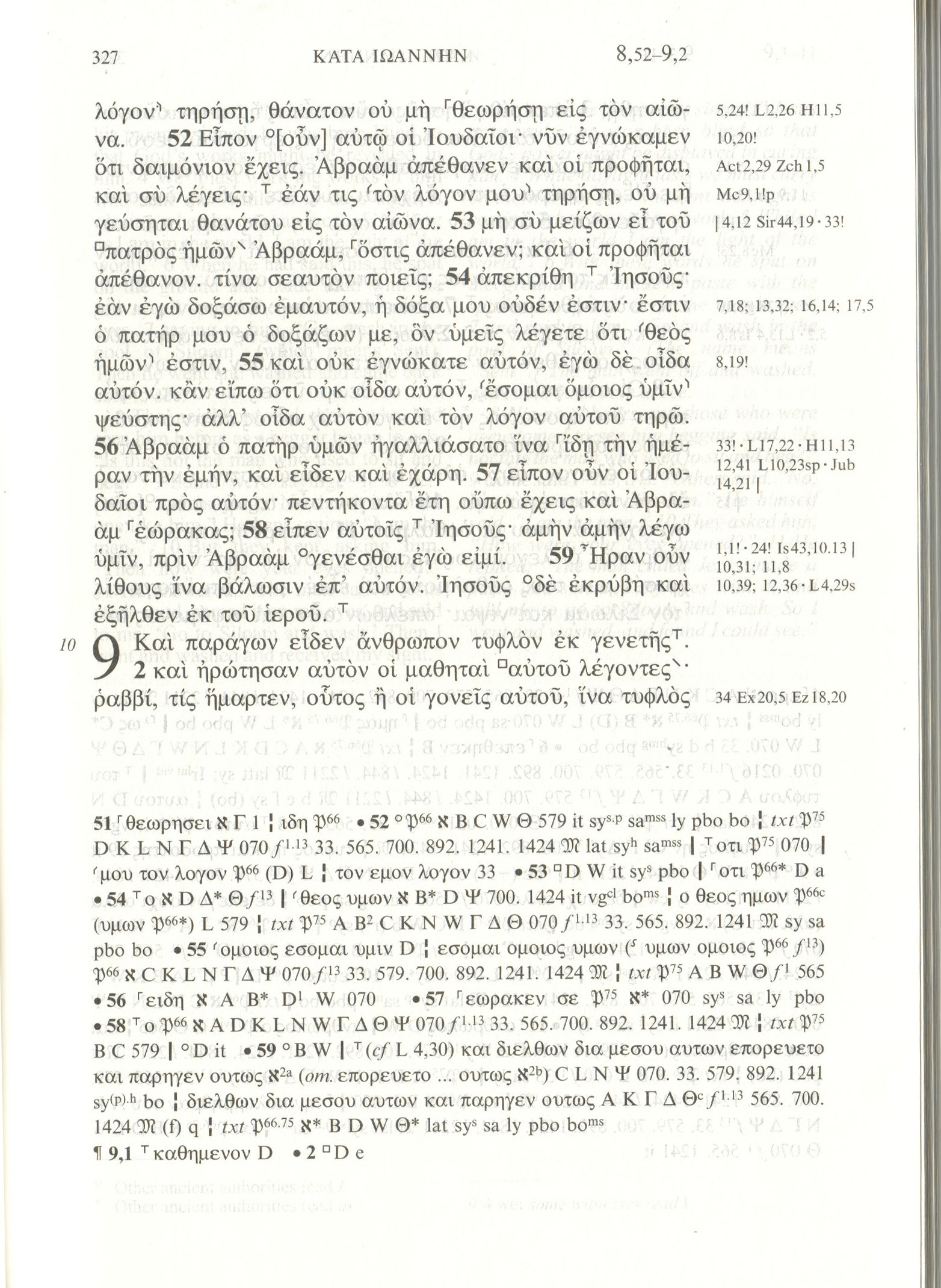 A) Texte Grec (GNT) : εἶπεν αὐτοῖς ἰησοῦς, ἀμὴν ἀμὴν λέγω ὑμῖν, πρὶν ἀβραὰμ γενέσθαι ἐγὼ εἰμί