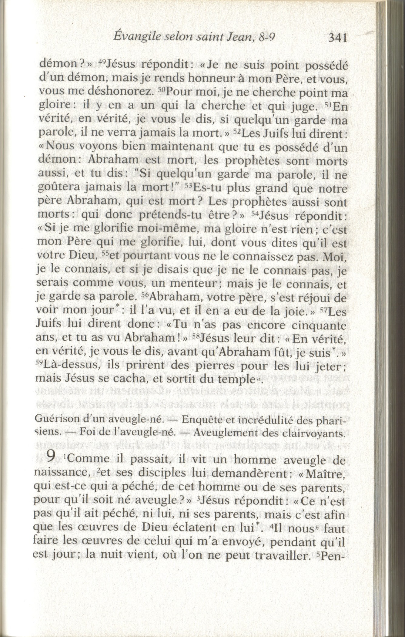 - En vérité, en vérité, je vous le dis, avant qu'Abraham ne fût, je suis. (NT Annoté, Père Buzy - édition 1949)