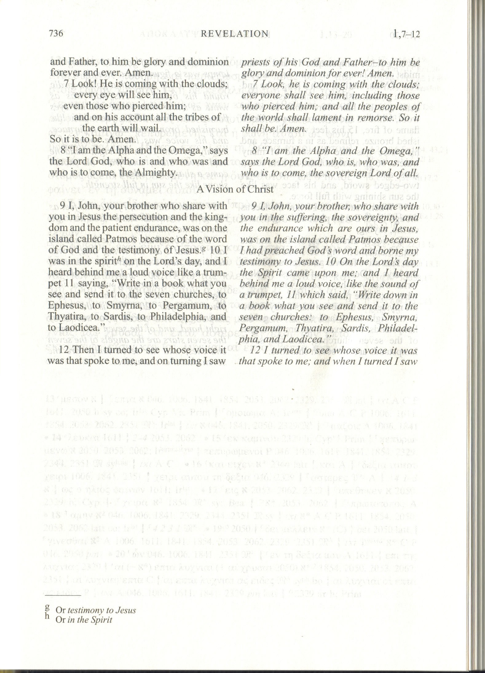 2) NRSV : "I am the Alpha and the Omega", says the Lord God, who is and who was and who is to come, the Almighty.