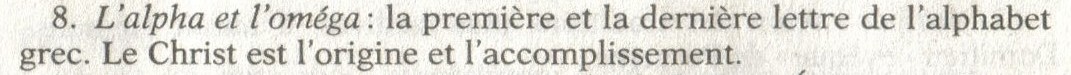 3) TOB (en haut à gauche) : Je suis l'Alpha et l'Oméga, dit le Seigneur Dieu, celui qui est, qui était et qui vient, le Tout-Puissant.