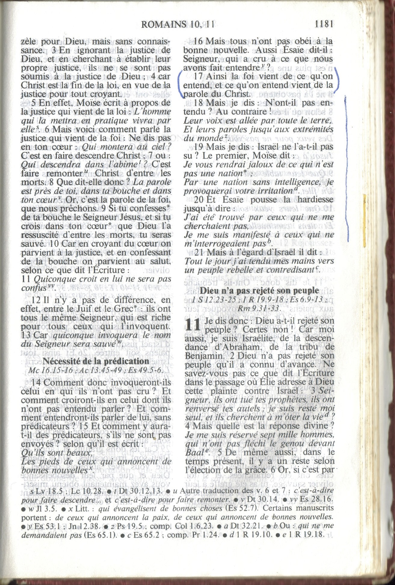 3) TOB (En haut à gauche) : Ainsi la foi vient de la prédication et la prédication c'est l'annonce de la parole du Christ