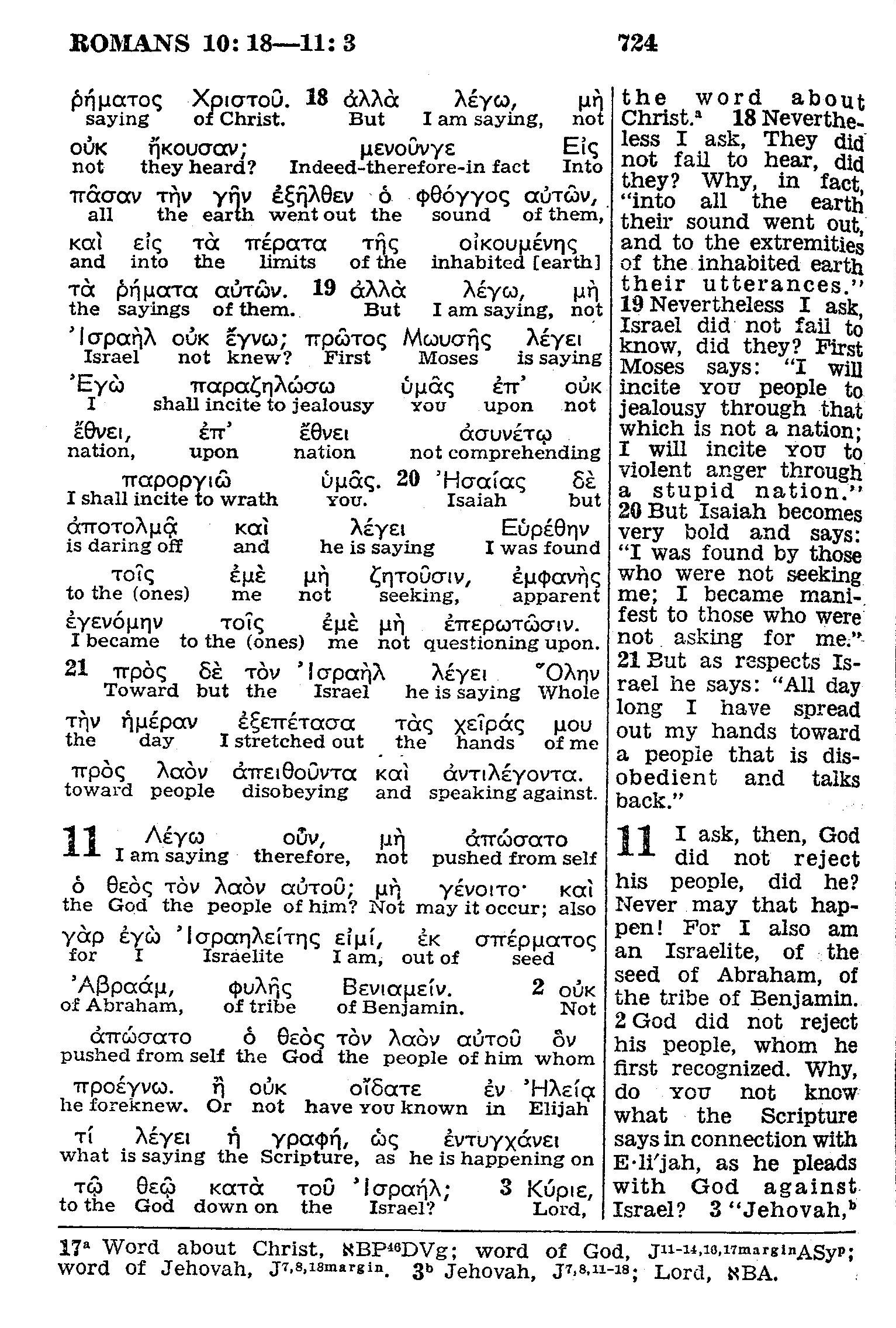 Même chose dans la traduction interlinéaire du Royaume des témoins de Jéhovah (KIT pages 723 et 724) :