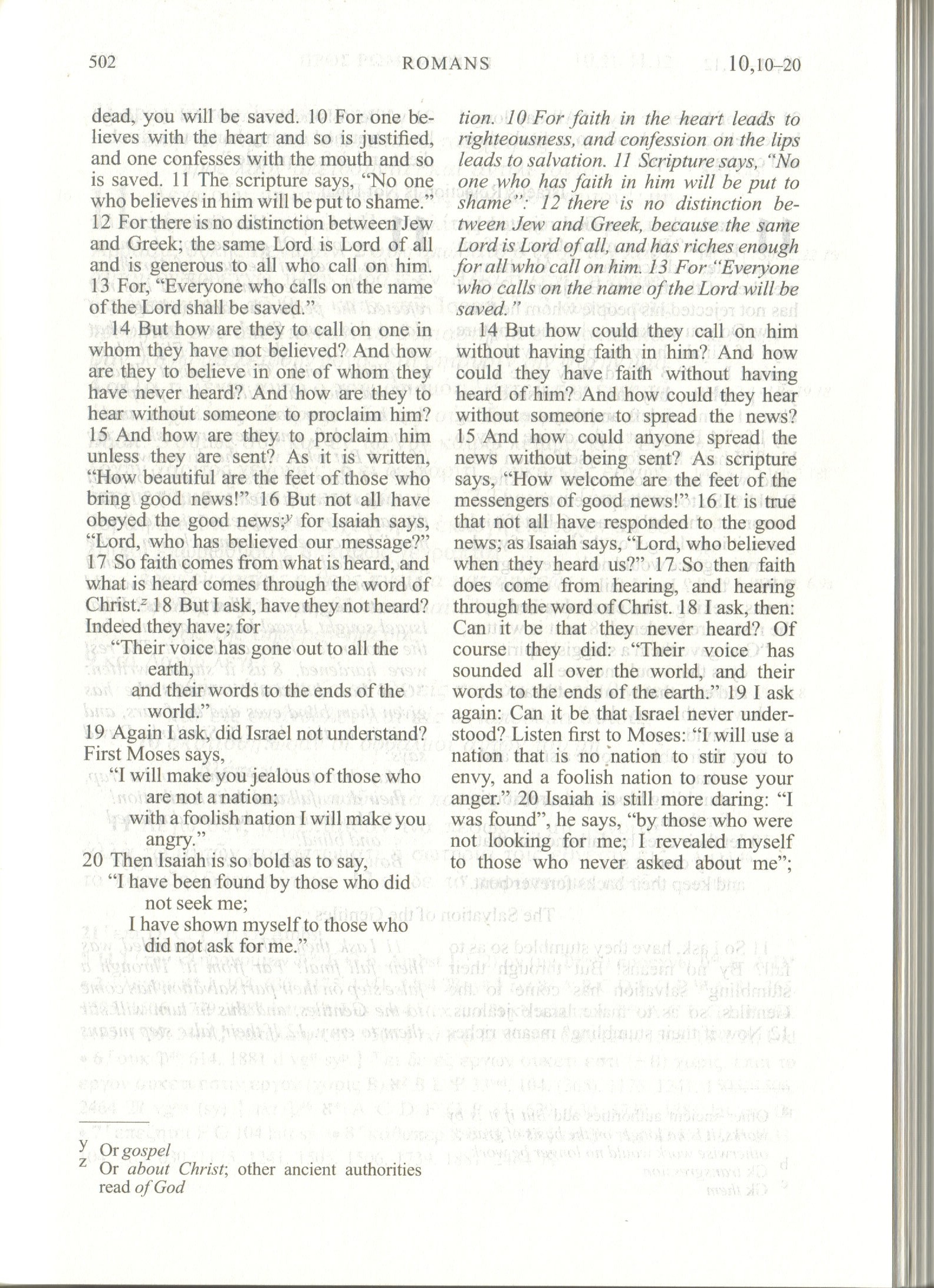 2) NRSV : So faith comes from what is heard, and what is heard comes through the word of Christ.*