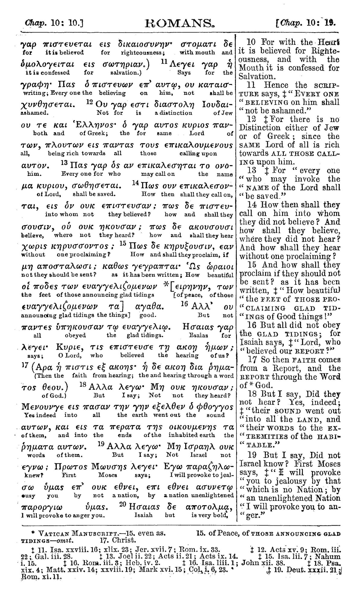 1) Greek : ἄρα ἡ πίστις ἐξ ἀκοῆς, ἡ δὲ ἀκοὴ διὰ ῥήματος Χριστοῦ.