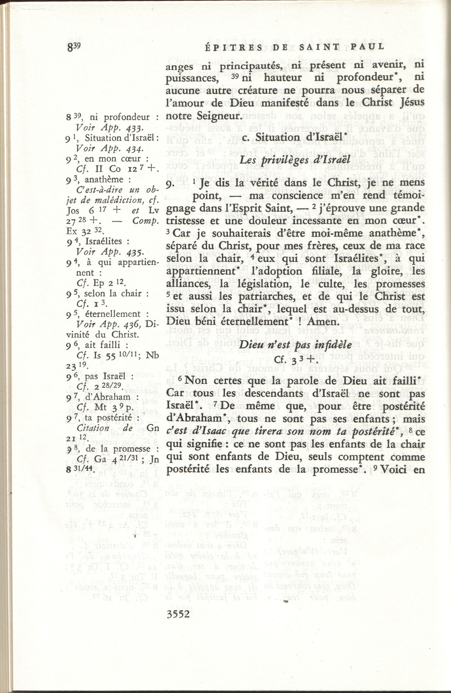 3) TOB (En haut à gauche) : et les pères, eux enfin de qui, selon la chair, est issu le Christ qui est au-dessus de tout, Dieu béni éternellement. Amen.