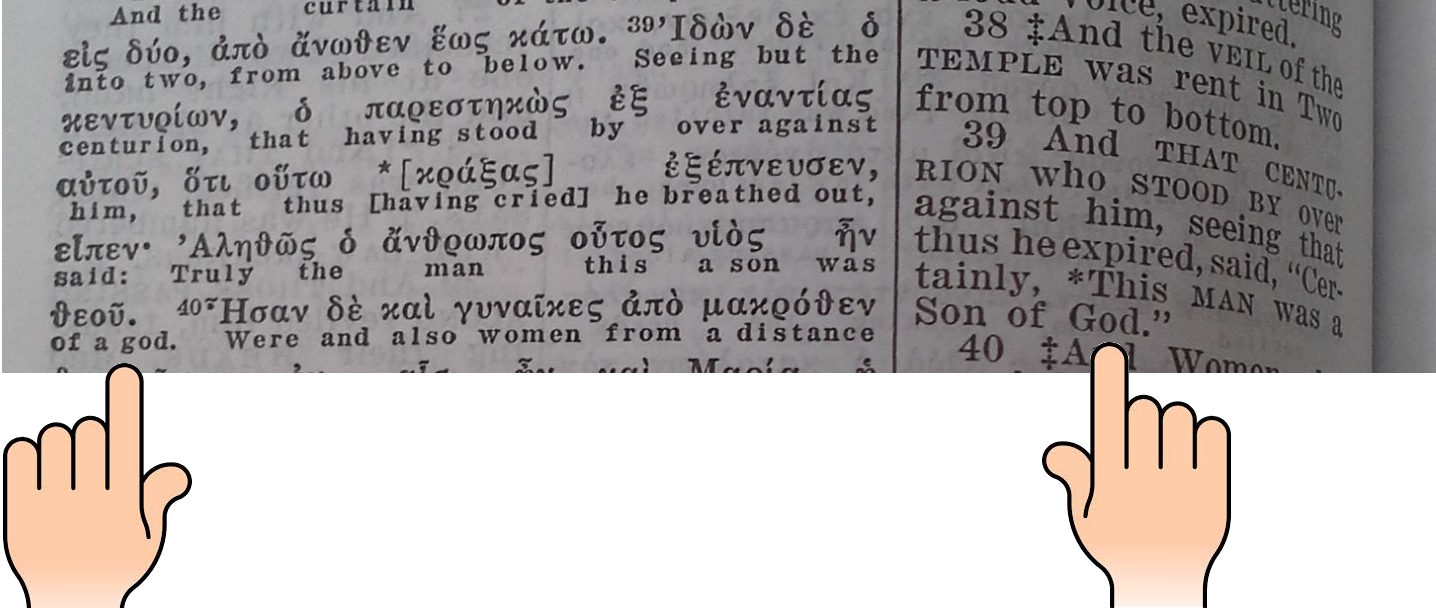 Voici un exemple concret en Marc 15:39 :
