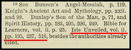 Le livre "Bible Myths and their parallels in other religions" de T.W. Doane, contient 13 citations d'Helena Blavatsky.
